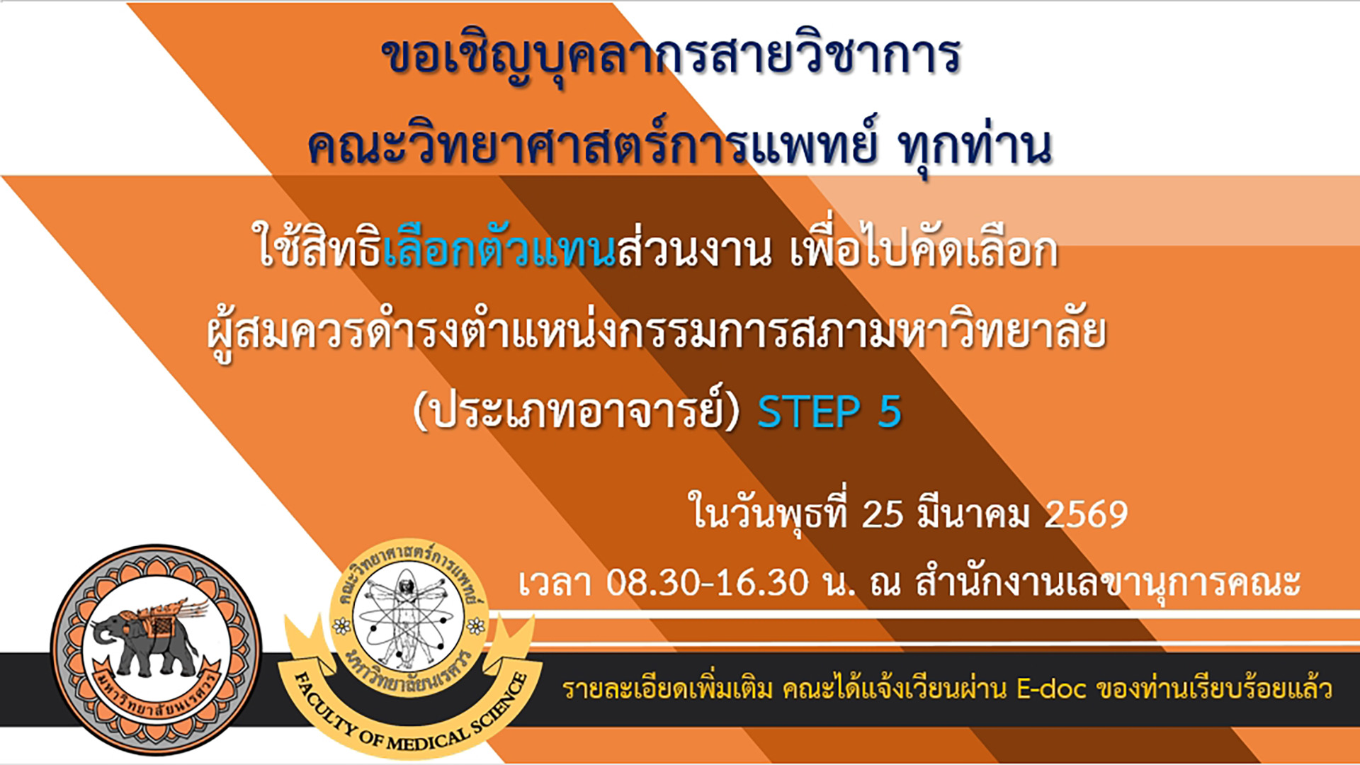 ขอเชิญบุคลากรสายวิชาการคณะวิทยาศาสตร์การแพทย์ ทุกท่าน ใช้สิทธฺเลือกตัวแทนส่วนงาน
