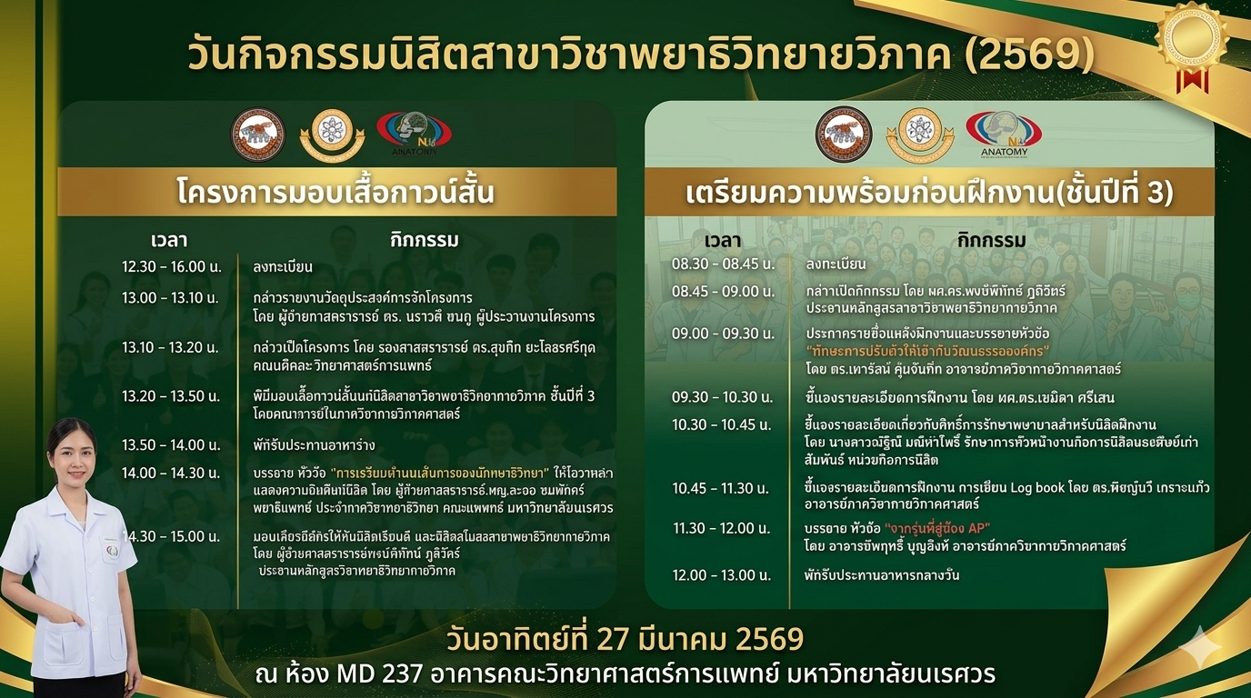 กิจกรรมพิธีมอบเสื้อกราวด์สั้น และ กิจกรรมเตรียมความพร้อมก่อนออกฝึกงาน ของนิสิตสาขาวิชาพยาธิวิทยากายวิภาคศาสตร์