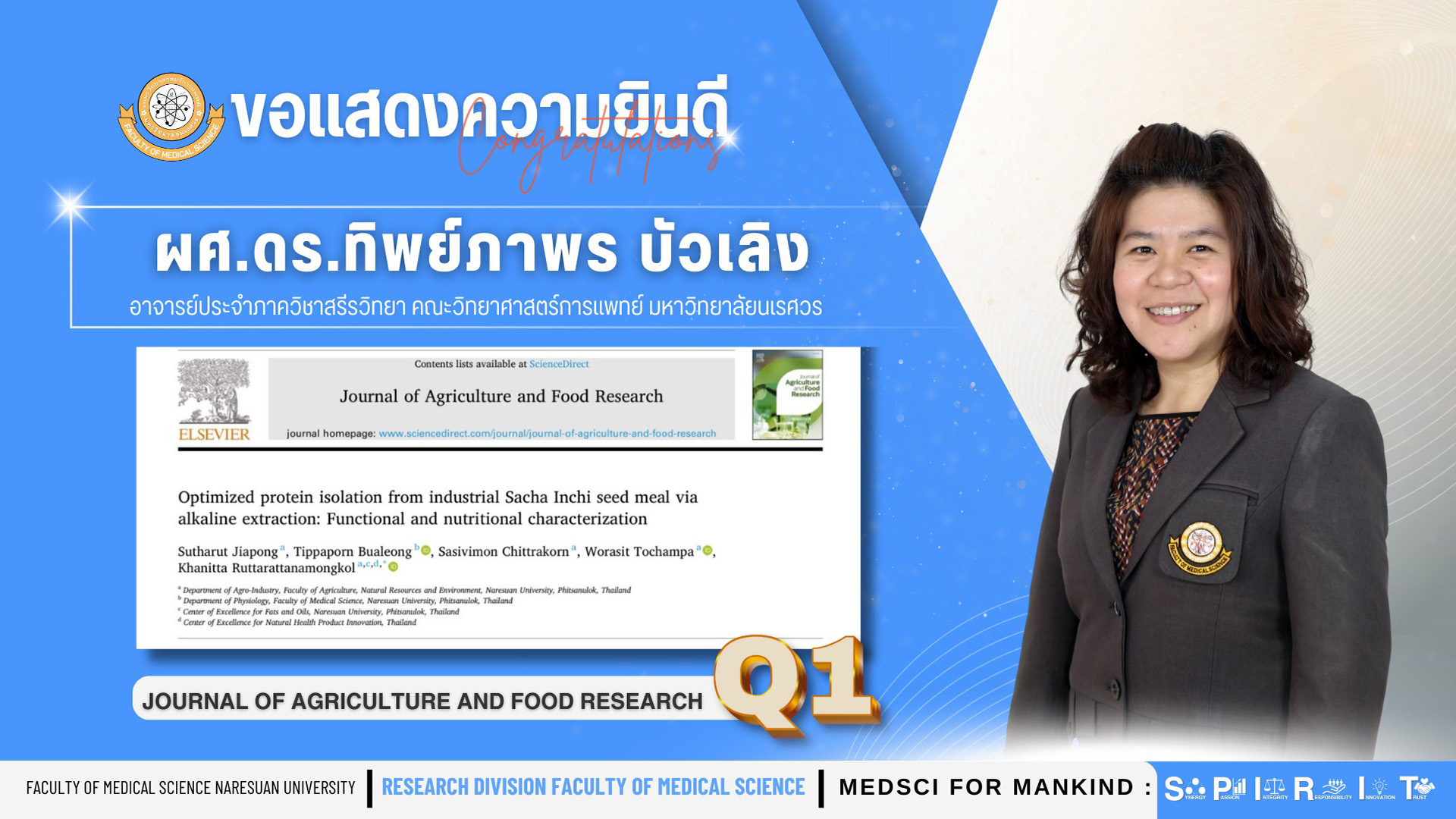 คณะวิทยาศาสตร์การแพทย์ ขอแสดงความยินดีกับ ผศ.ดร.ทิพย์ภาพร บัวเลิง อาจารย์ประจำภาควิชาสรีรวิทยา คณะวิทยาศาสตร์การแพทย์ มหาวิทยาลัยนเรศวร