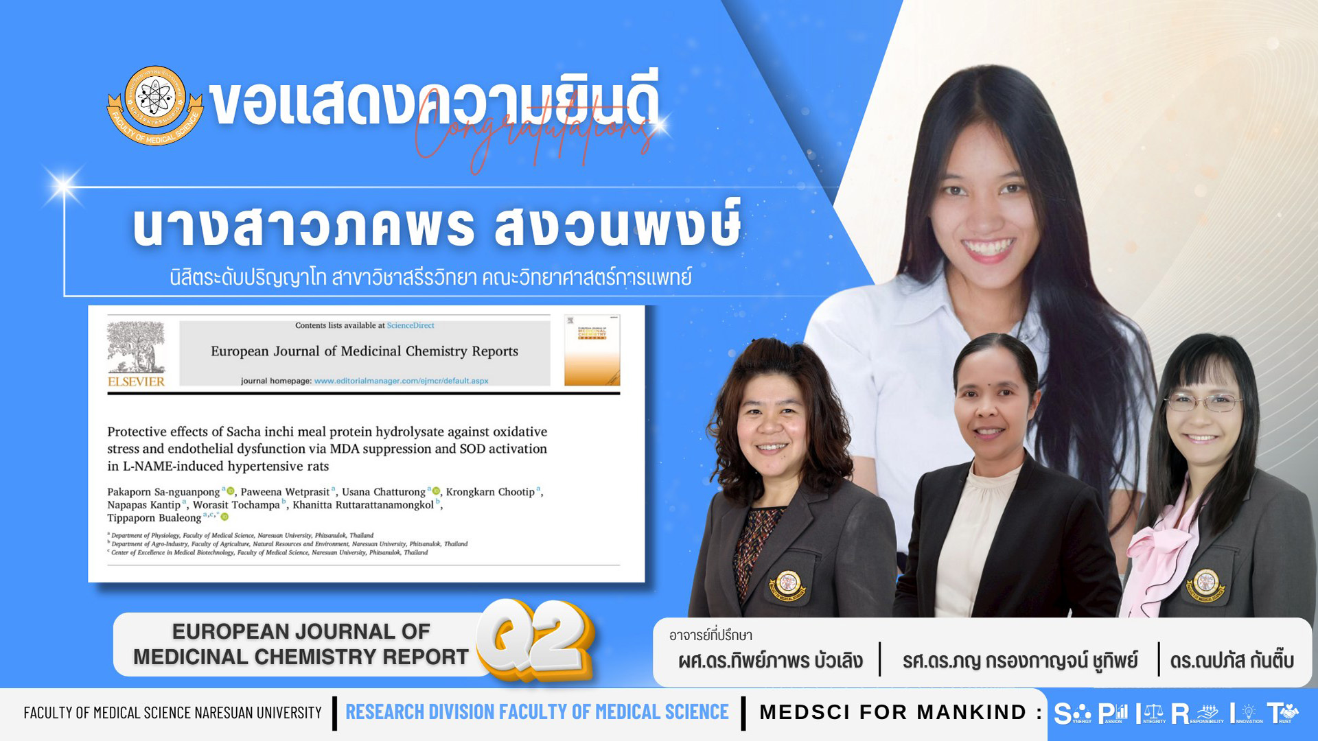 คณะวิทยาศาสตร์การแพทย์ ขอแสดงความยินดีกับนางสาวภคพร สงวนพงษ์ นิสิตระดับปริญญาโท สาขาวิชาสรีรวิทยา คณะวิทยาศาสตร์การแพทย์ มหาวิทยาลัยนเรศวร