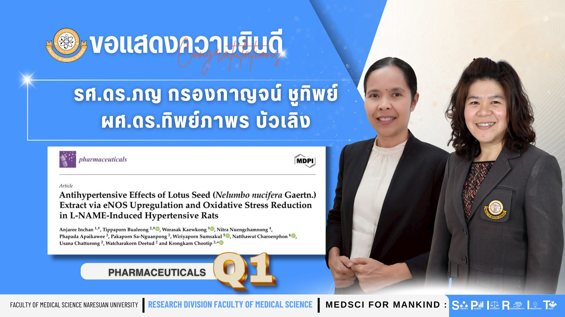 คณะวิทยาศาสตร์การแพทย์ ขอแสดงความยินดีกับ รองศาสตราจารย์ ดร.เภสัชกรหญิง กรองกาญจน์ ชูทิพย์ ผศ.ดร.ทิพย์ภาพร บัวเลิง อาจารย์ประจำภาควิชาสรีรวิทยา คณะวิทยาศาสตร์การแพทย์ มหาวิทยาลัยนเรศวร