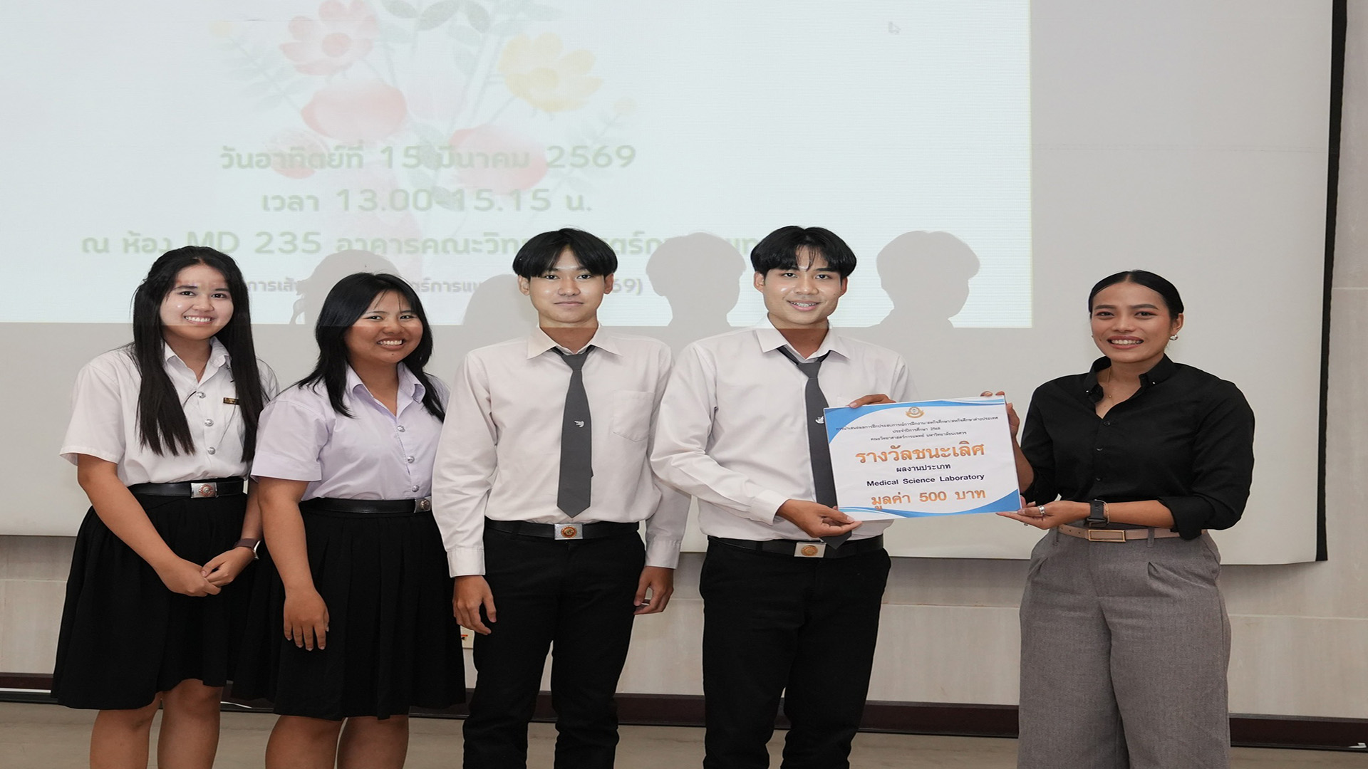 ขอแสดงความยินดี กับนิสิตหลักสูตรวิทยาศาสตรบัณฑิต สาขาวิชาวิทยาศาสตร์การแพทย์ ชั้นปีที่ 4 ที่ได้รับรางวัลการนำเสนอผลงานสหกิจศึกษา ภาคเรียนปลาย ปีการศึกษา 2568