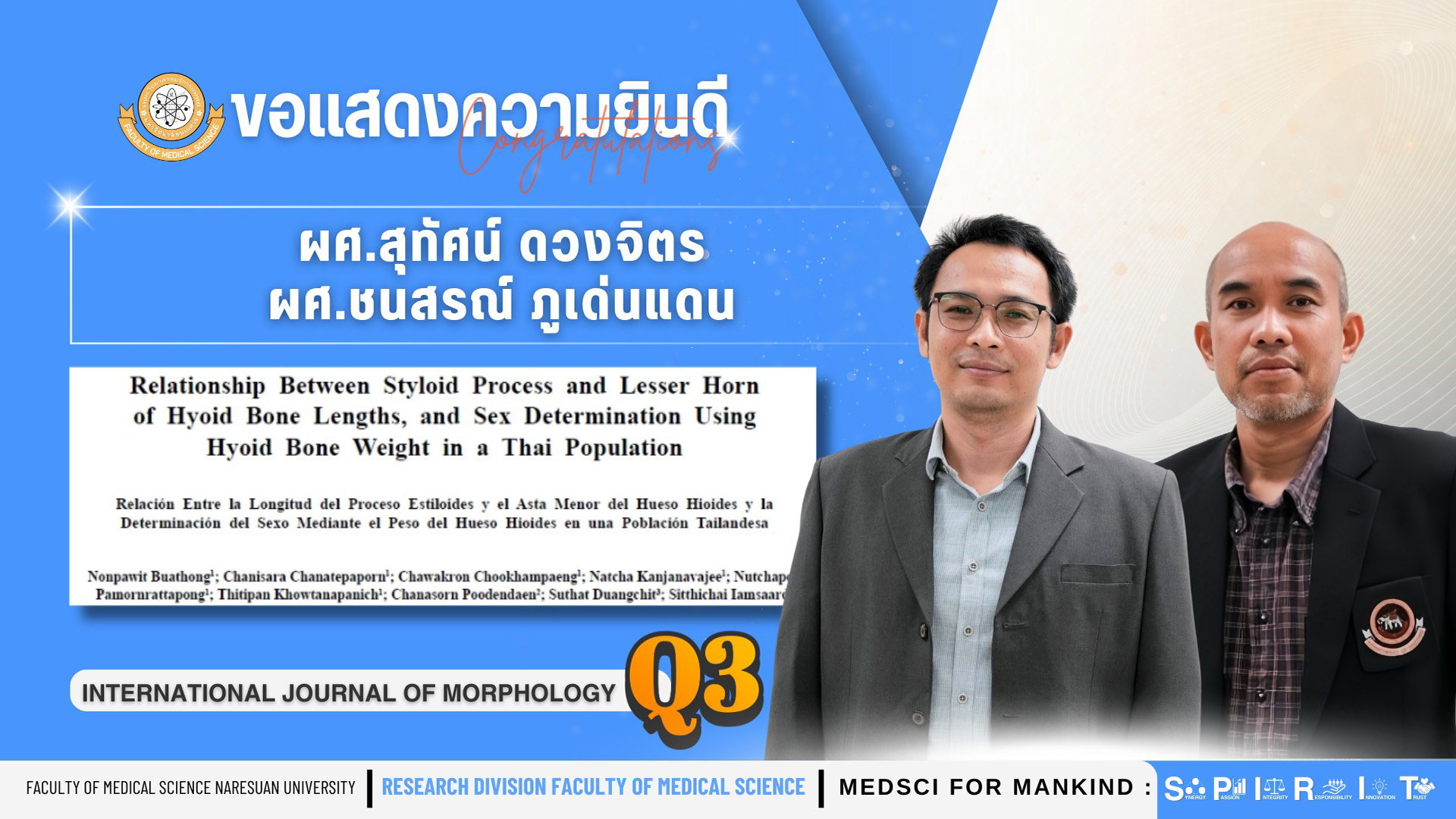 คณะวิทยาศาสตร์การแพทย์ ขอแสดงความยินดีกับผศ.สุทัศน์ ดวงจิตร ผศ.ชนสรณ์ ภูเด่นแดน ที่ได้รับการตีพิมพ์ในวารสารระดับนานาชาติ (Scopus Q3)