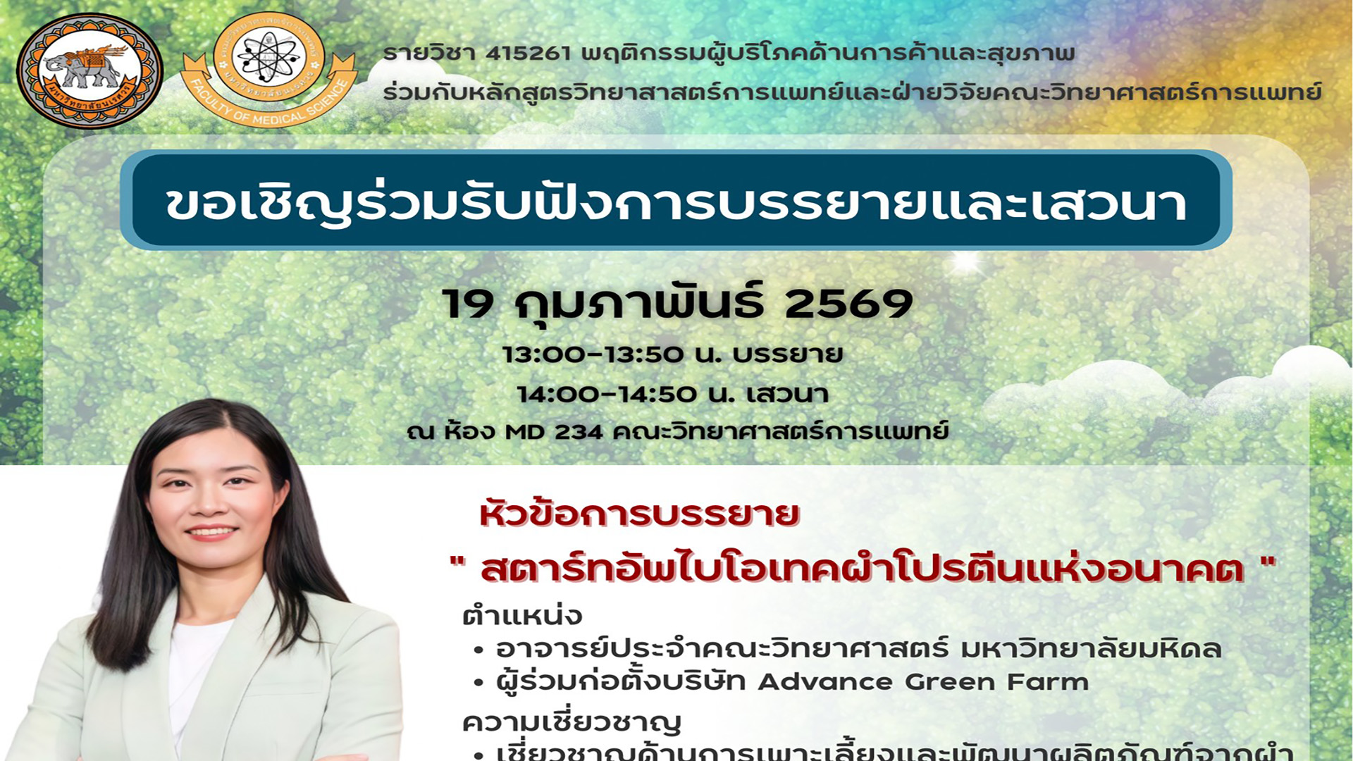 ขอเชิญเข้าร่วมฟังการบรรยายและเสวนาทางวิชาการในรายวิชา 415261 พฤติกรรมผู้บริโภคด้านการค้าและสุขภาพ