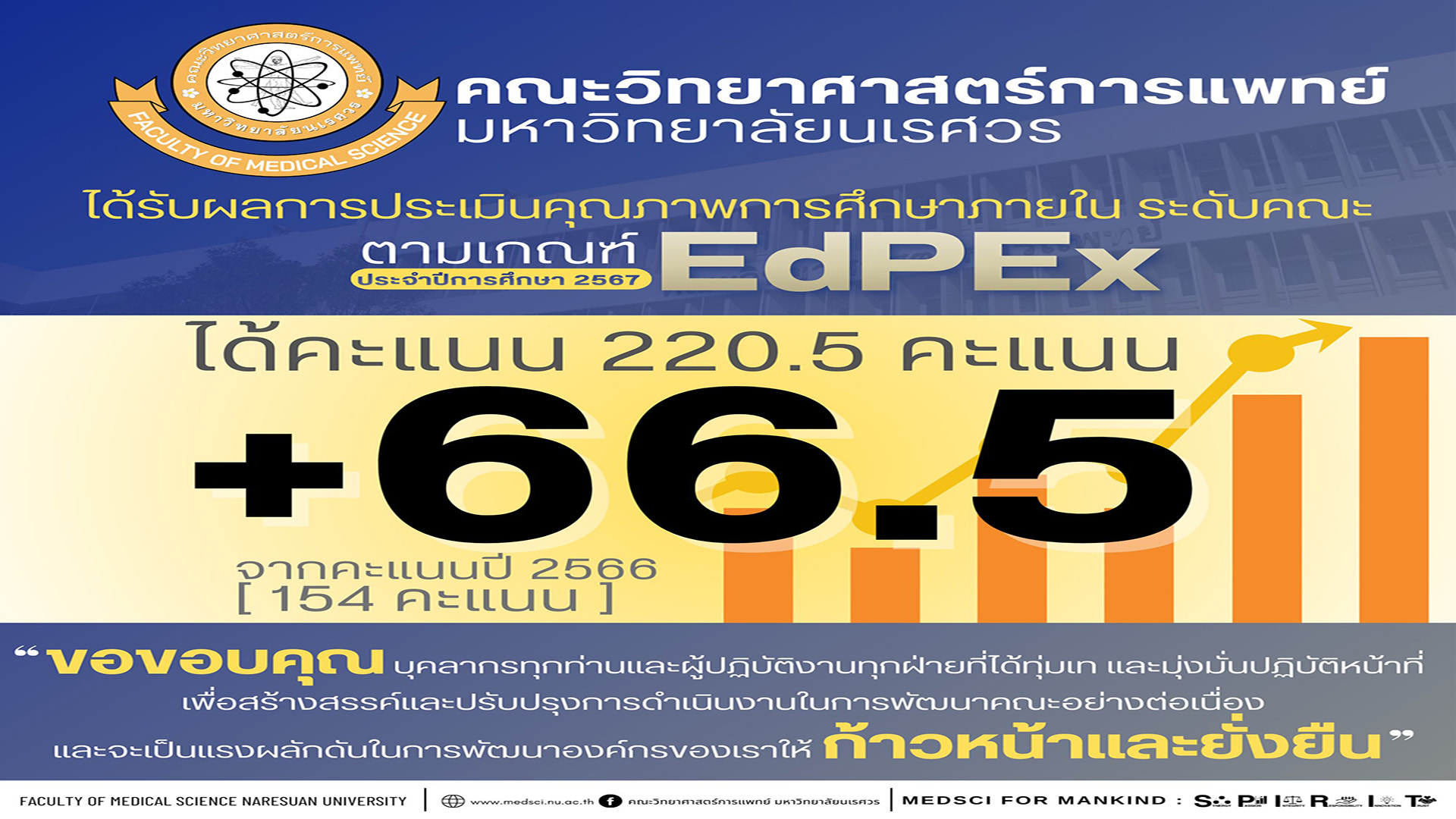 คณะวิทยาศาสตร์การแพทย์ มหาวิทยาลัยนเรศวร ได้รับผลการประเมินคุณภาพการศึกษาภายใน ระดับคณะ ตามเกณฑ์ EdPEx ประจำปีการศึกษา 2567