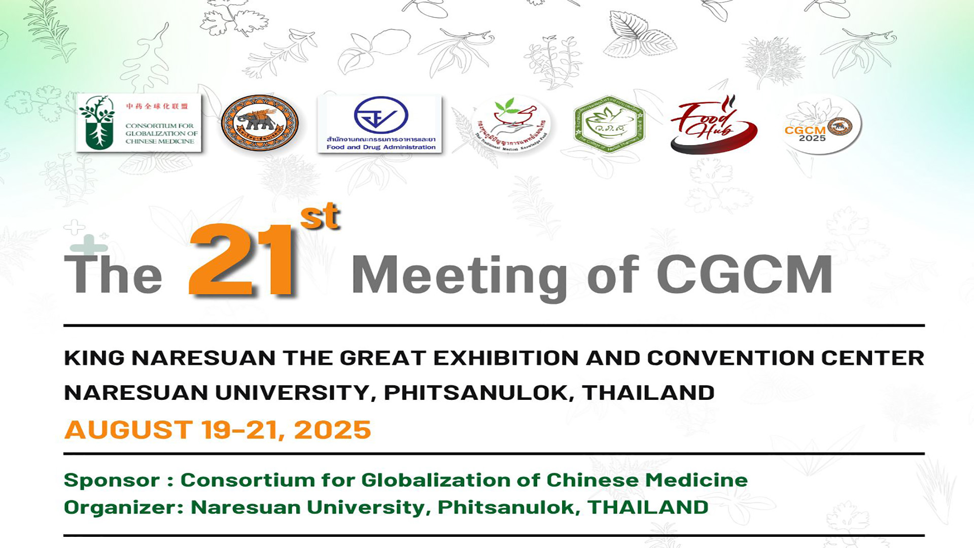 ขยายเวลารับผลงาน The 21st Meeting of the Consortium for Globalization of Chinese Medicine (CGCM 2025)