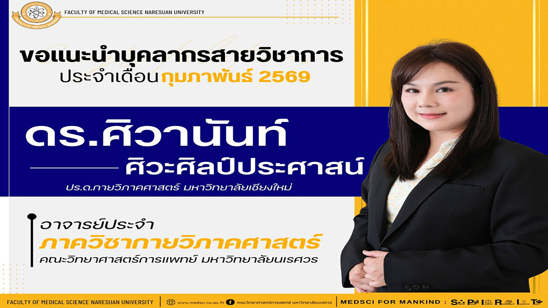คณะวิทยาศาสตร์การแพทย์ ขอแนะนำบุคลากรสายวิชาการ ประจำเดือนกุมภาพันธ์ 2569