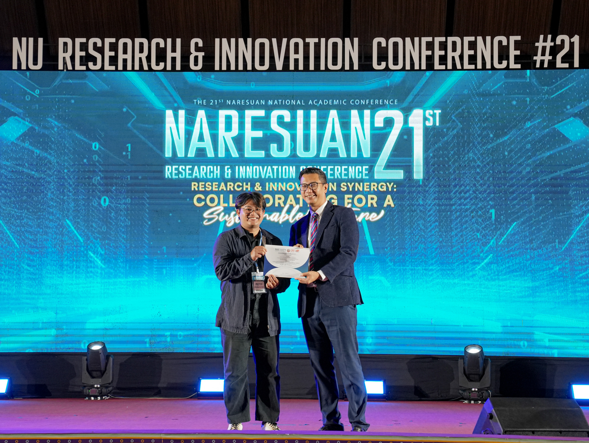 ในงานประชุมวิชาการระดับชาติ นเรศวรวิจัยและนวัตกรรม ครั้งที่ 21“Research & Innovation Synergy: Collaborating for a Sustainable Future” ระหว่างวันที่ 17 – 18 กรกฎาคม 2568 ณ ศูนย์แสดงนิทรรศการและการจัดประชุมสมเด็จพระนเรศวรมหาราช มหาวิทยาลัยนเรศวร
