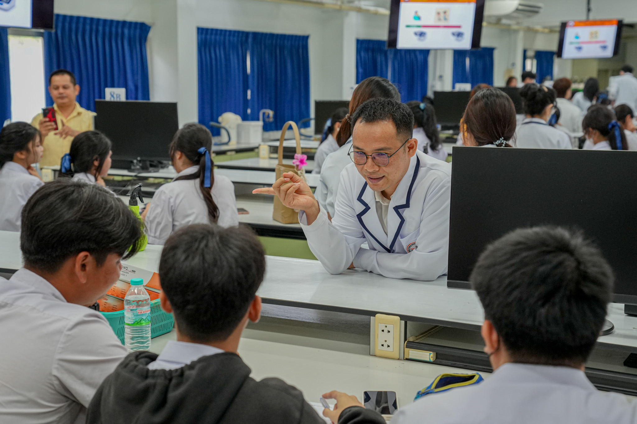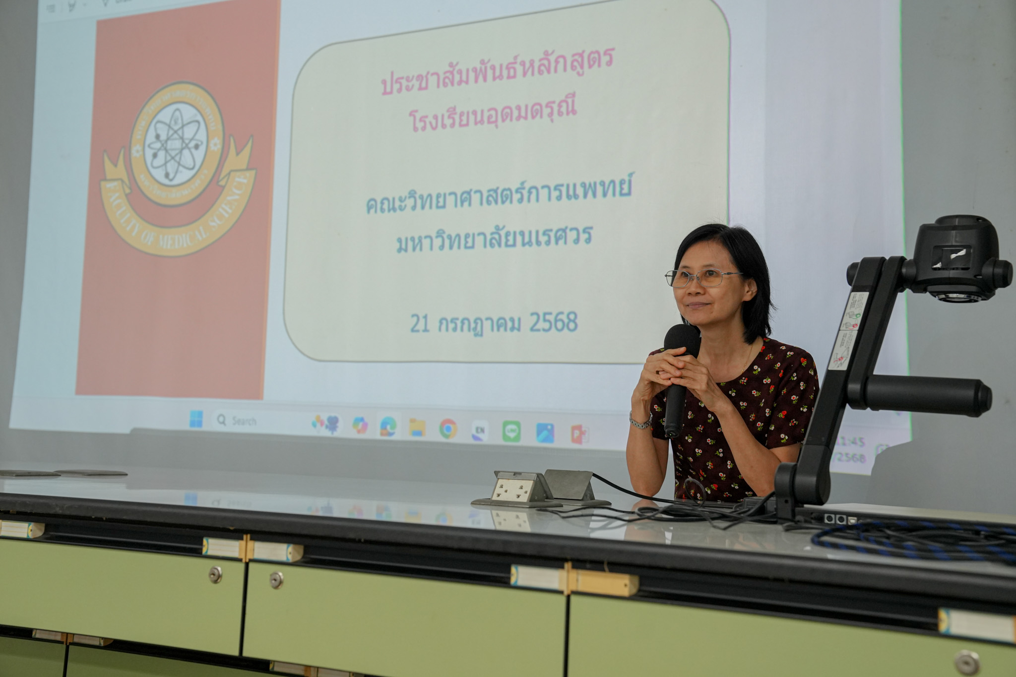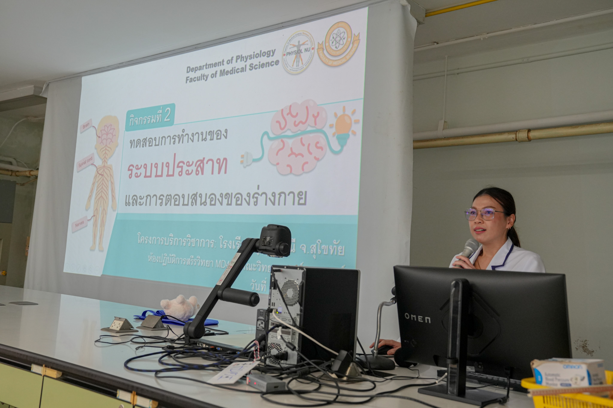 วันจันทร์ที่ 21 กรกฎาคม 2568 หน่วยบริการวิชาการเพื่อชุมชน คณะวิทยาศาสตร์การแพทย์ ดำเนินการจัดกิจกรรมการให้ความรู้ทางวิชาการและแนะนำหลักสูตรของคณะวิทยาศาสตร์การแพทย์ ให้กับนักเรียนมัธยมศึกษาปีที่ 6 โรงเรียนอุดมดรุณี จังหวัดสุโขทัย ณ ห้องปฏิบัติการ MD 518/1 ภาควิชากายวิภาคศาสตร์ และห้องปฏิบัติการ MD 423 ภาควิชาสรีรวิทยา อาคารเรียนคณะวิทยาศาสตร์การแพทย์ มหาวิทยาลัยนเรศวร