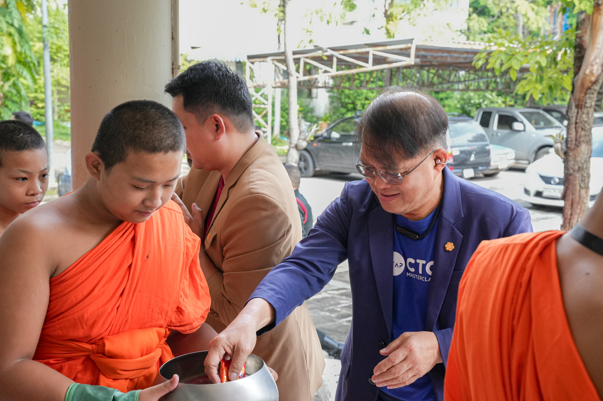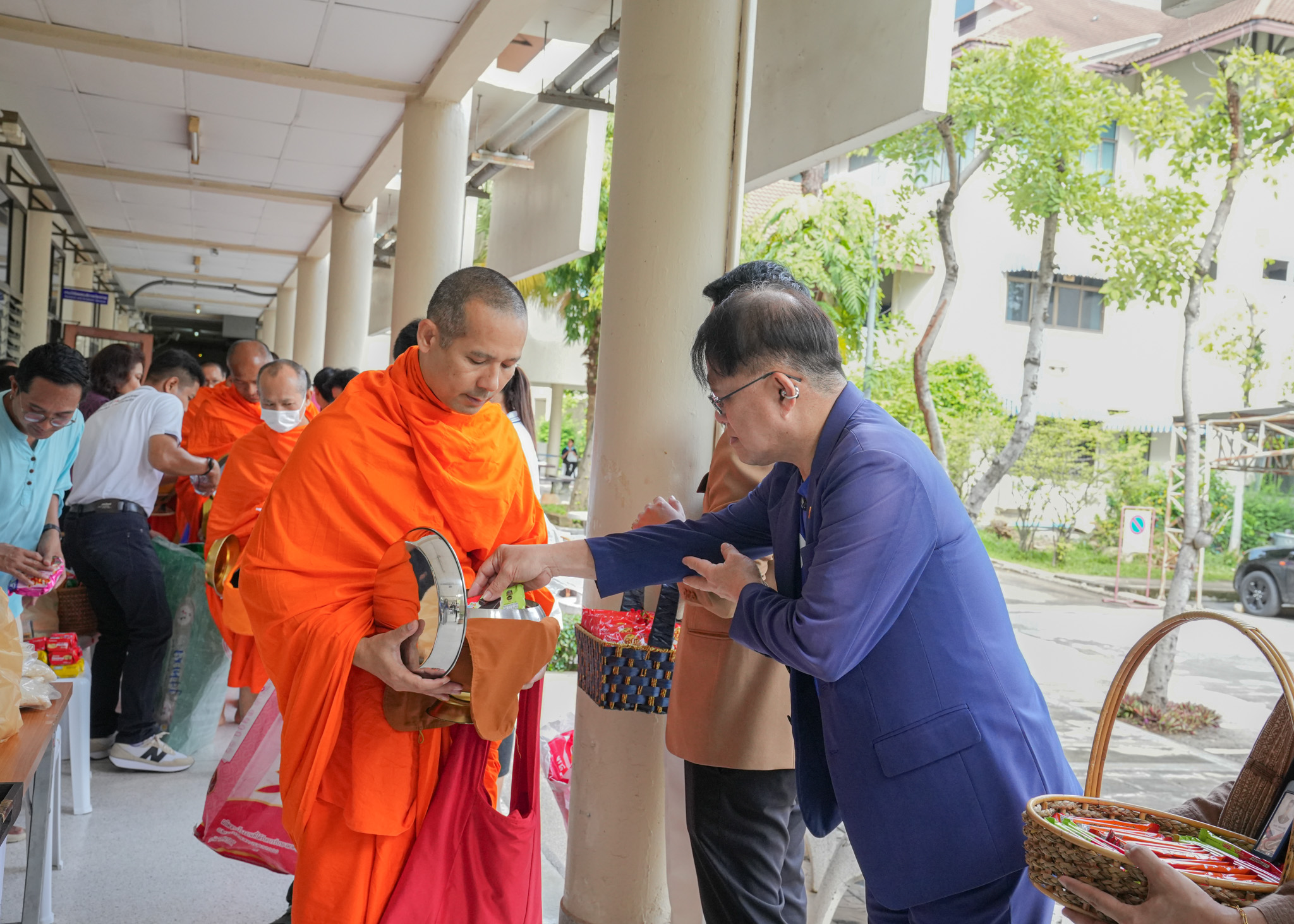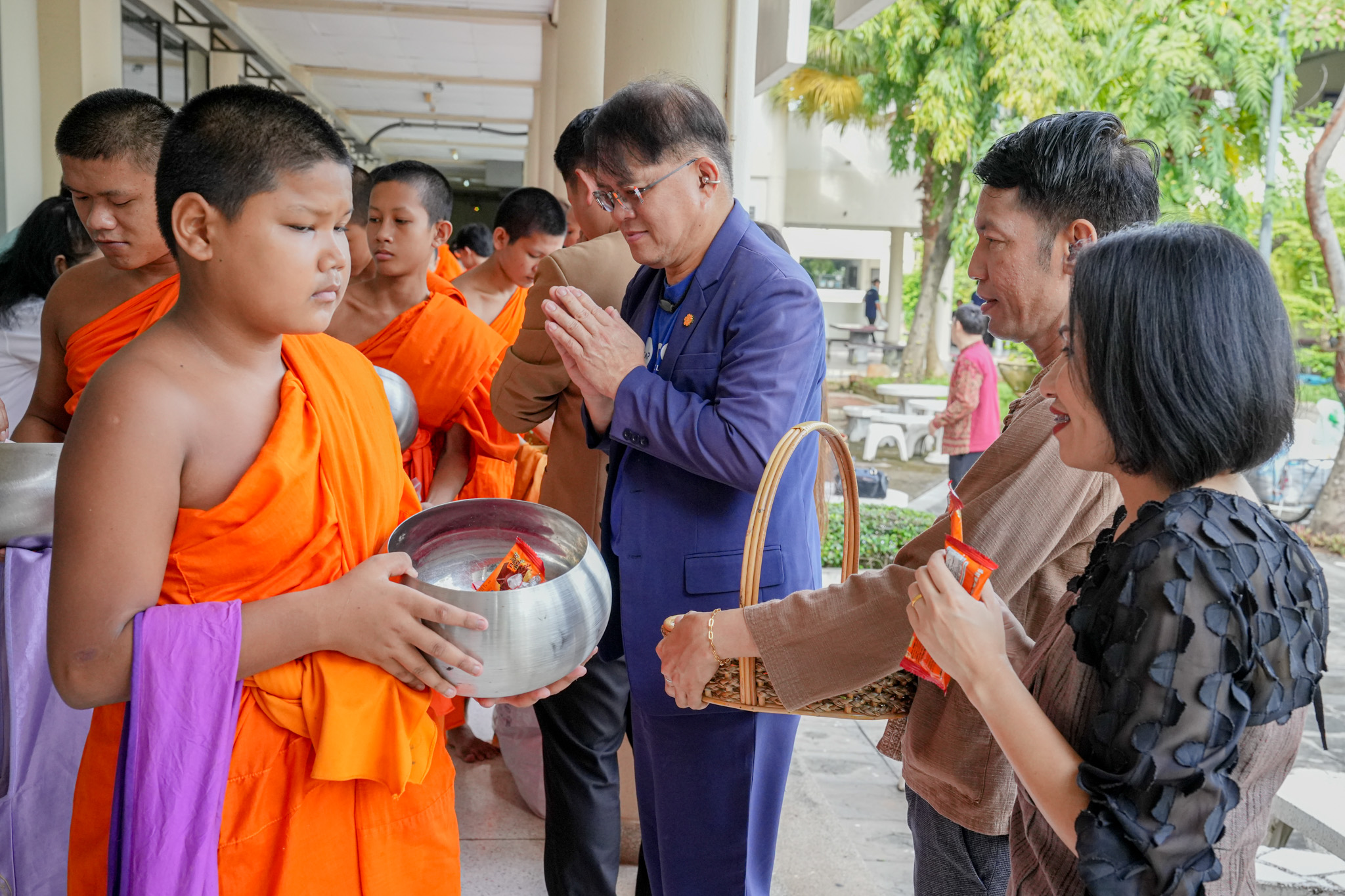 วันที่ 1 สิงหาคม 2568 รองศาสตราจารย์ ดร.สุขกิจ ยะโสธรศรีกุล คณบดีคณะวิทยาศาสตร์การแพทย์ พร้อมด้วย รองศาสตราจารย์ ดร.วรศักดิ์ แก้วก่อง รองคณบดีฝ่ายบริหารและส่งเสริมความยั่งยืน, ดร.หทัยชนก อิ่มเพ็ง รองคณบดีฝ่ายพัฒนานิสิต, ดร.สุภัทรา คันทรง ผู้ช่วยคณบดี และบุคลากร คณะวิทยาศาสตร์การแพทย์ ร่วมทำบุญตักบาตรข้าวสารอาหารแห้ง และมอบช่อดอกไม้แสดงความยินดี เนื่องในโอกาสวันคล้ายวันสถาปนาคณะมนุษยศาสตร์ ครบรอบ 35 ปี ณ คณะมนุษยศาสตร์ มหาวิทยาลัยนเรศวร