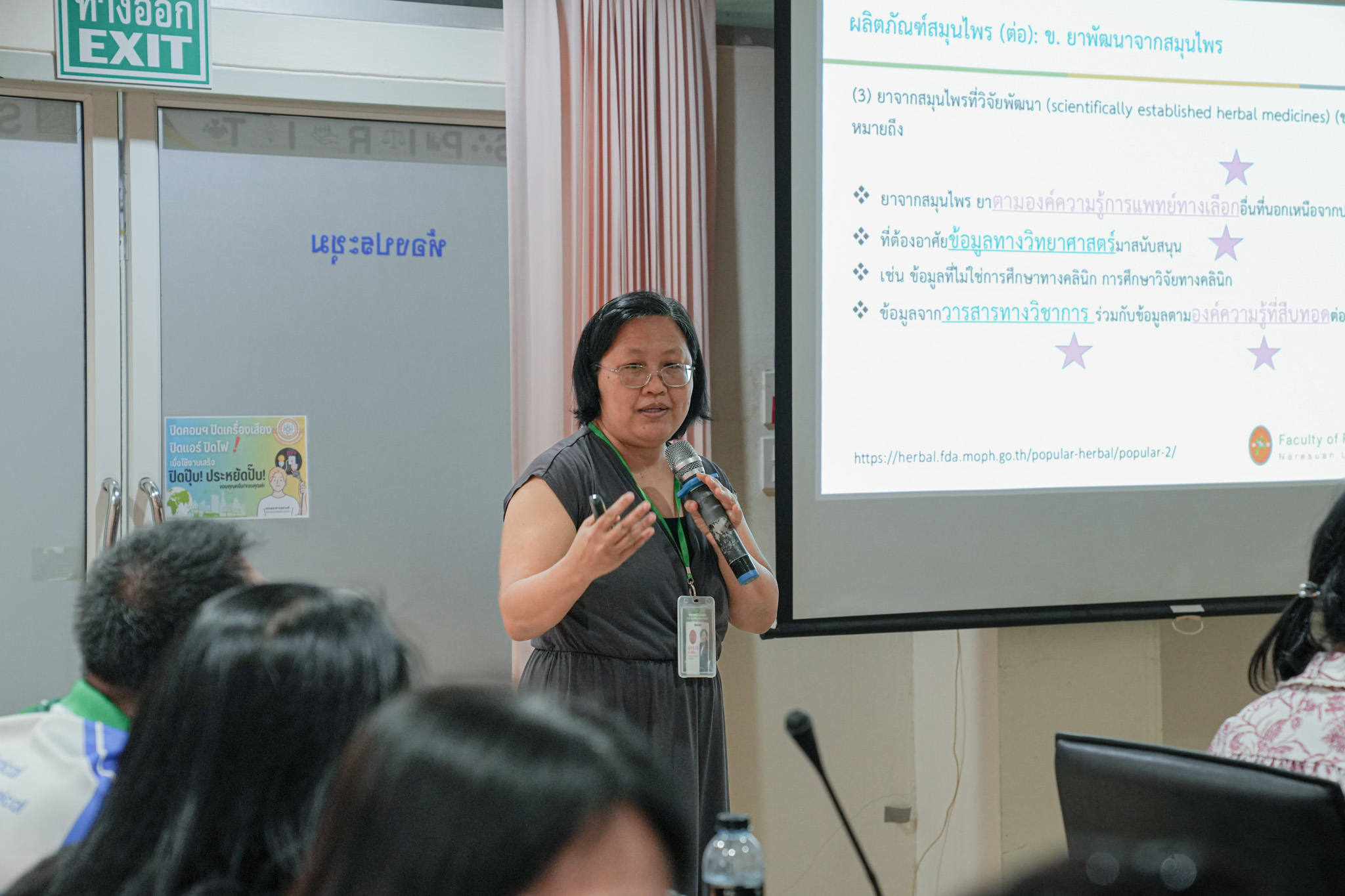 ในครั้งนี้ได้รับเกียรติจาก ผู้ช่วยศาสตราจารย์ ดร.ภญ.สุภาวดี พาหิระ อาจารย์ประจำคณะเภสัชศาสตร์ มาร่วมถ่ายทอดประสบการณ์ในหัวข้อ “My Journey Bridging Research and Real-World Impact”