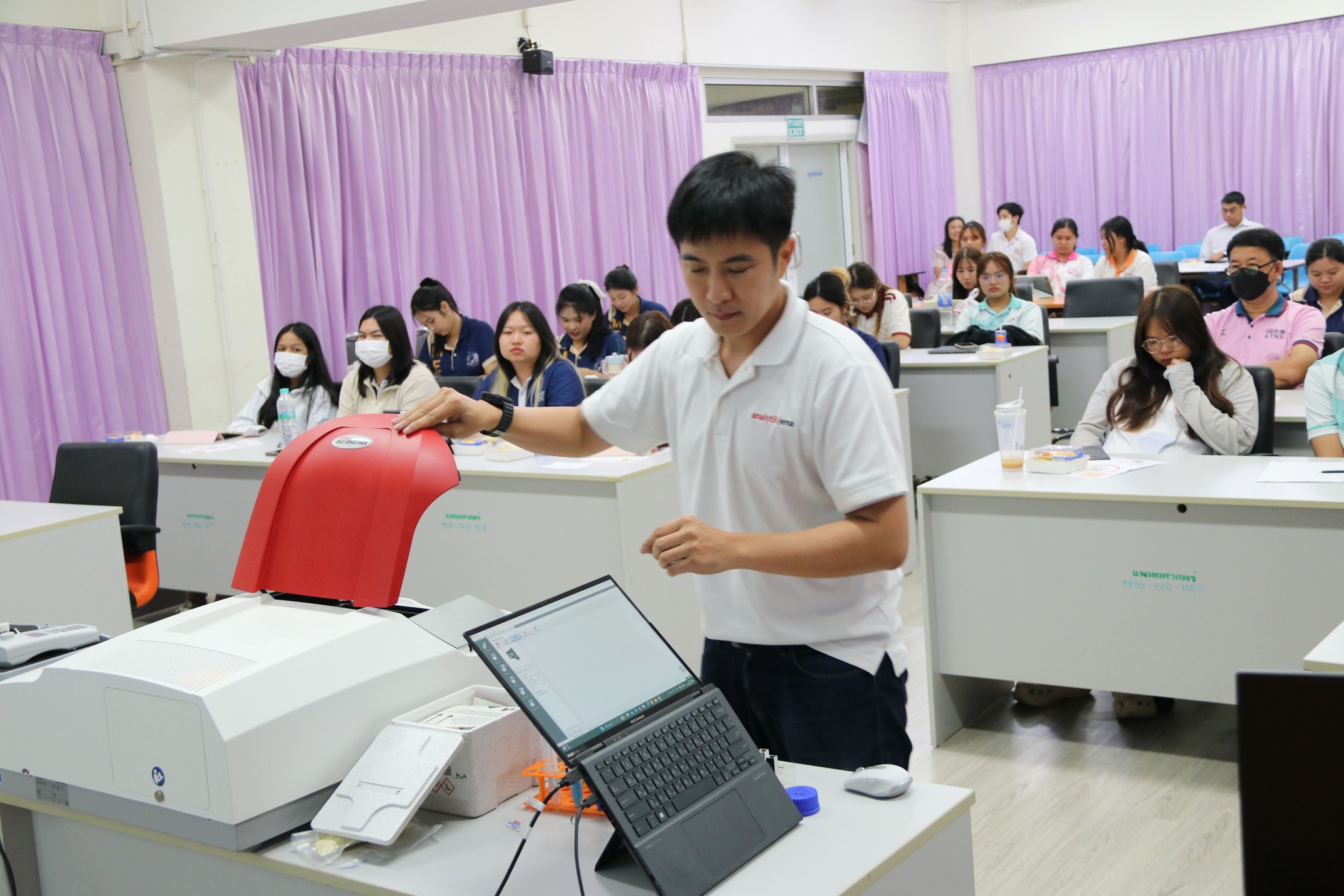 โดยวิทยากรผู้เชี่ยวชาญจากบริษัท แลบคอนเนคชั่น จำกัด มาให้ความรู้เชิงลึกและแนวทางการประยุกต์ใช้เทคนิค UV-Vis Spectroscopy และในงานวิจัยเชิงนวัตกรรม ณ ห้องประชุม MD 417 อาคารเรียนคณะวิทยาศาสตร์การแพทย์ มหาวิทยาลัยนเรศวร