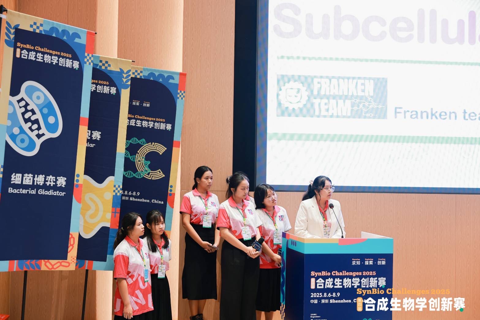 โดย Franken Team ได้นำเสนอผลงาน “Subcellular Symphony” ในสาย White Track (Biochemical Engineer) โดยมีแนวคิดแก้ปัญหาการเลี้ยงแบคทีเรียหลายชนิดพร้อมกัน ซึ่งปกติทำได้ยากเนื่องจากการแข่งขันแย่งทรัพยากรและสภาพการเจริญเติบโตต่างกัน ทีมได้พัฒนาเทคนิคการ สังเคราะห์โปรตีนแบบไร้เซลล์ (cell-free protein synthesis) โดยผสมส่วนประกอบสร้างโปรตีน (cell extracts) จากแบคทีเรีย 3 ชนิด คือ
