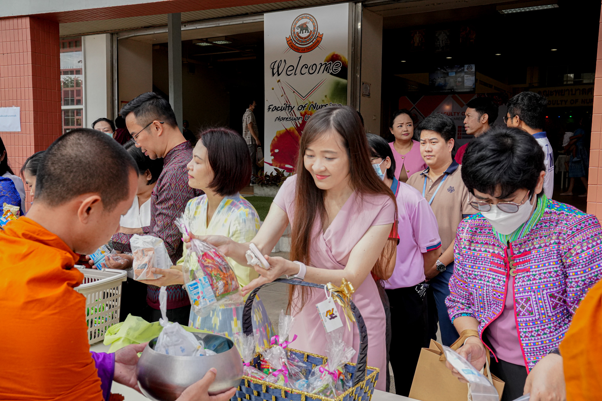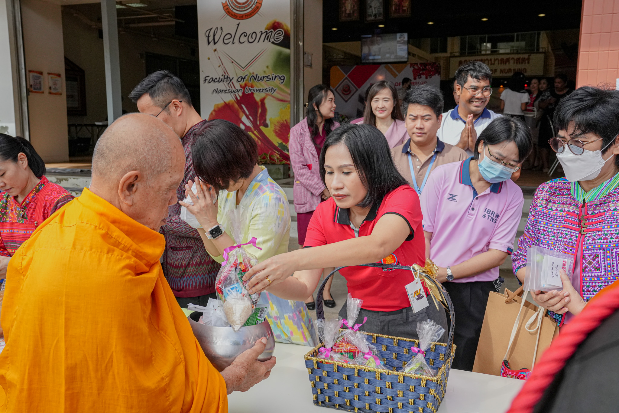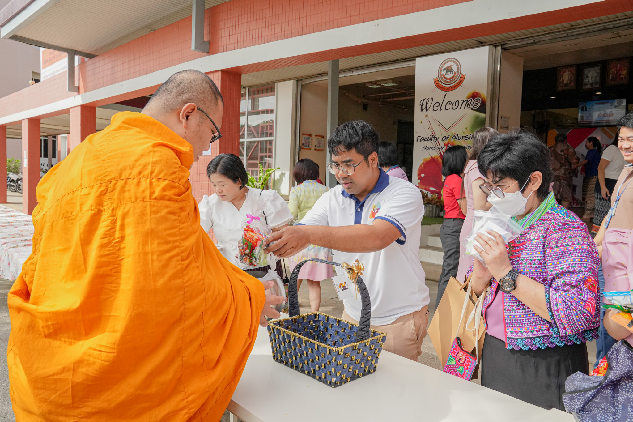 วันที่ 19 สิงหาคม 2568 รองศาสตราจารย์ ดร.สุขกิจ ยะโสธรศรีกุล คณบดีคณะวิทยาศาสตร์การแพทย์ พร้อมด้วย รองศาสตราจารย์ ดร.วรศักดิ์ แก้วก่อง รองคณบดีฝ่ายบริหารและส่งเสริมความยั่งยืน, รองศาสตราจารย์ ดร.สุภาพร ล้ำเลิศธน รองคณบดีฝ่ายวิจัยบัณฑิตวิทยาลัย และบุคลากร คณะวิทยาศาสตร์การแพทย์ ร่วมทำบุญตักบาตรข้าวสารอาหารแห้ง และมอบช่อดอกไม้แสดงความยินดี เนื่องในโอกาสวันคล้ายวันสถาปนาคณะพยาบาลศาสตร์ ครบรอบ 29 ปี ณ ลานอเนกประสงค์ ชั้น 1 คณะพยาบาลศาสตร์ มหาวิทยาลัยนเรศวร