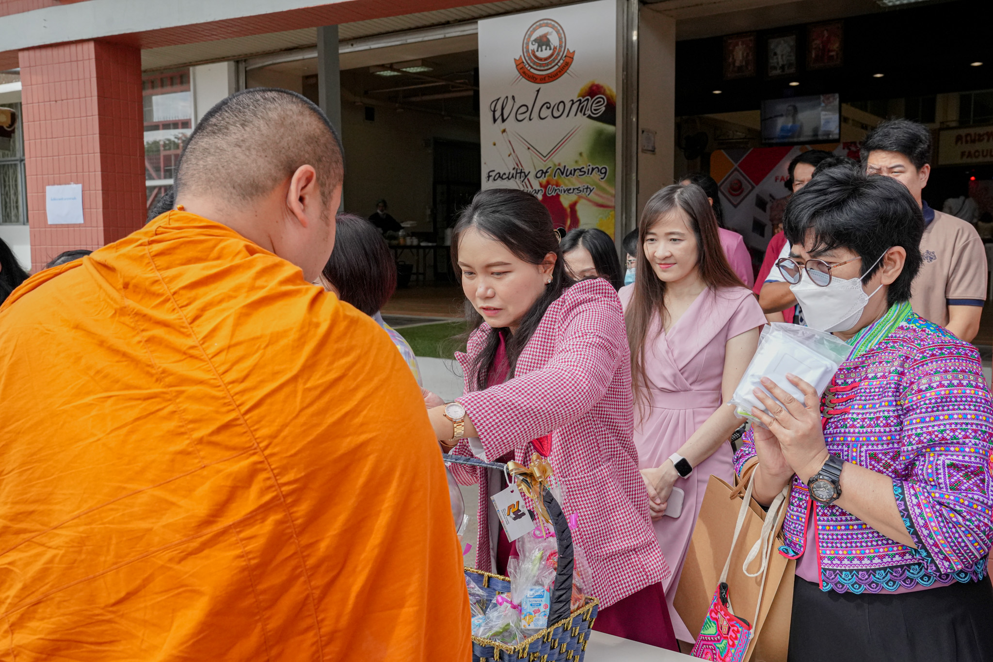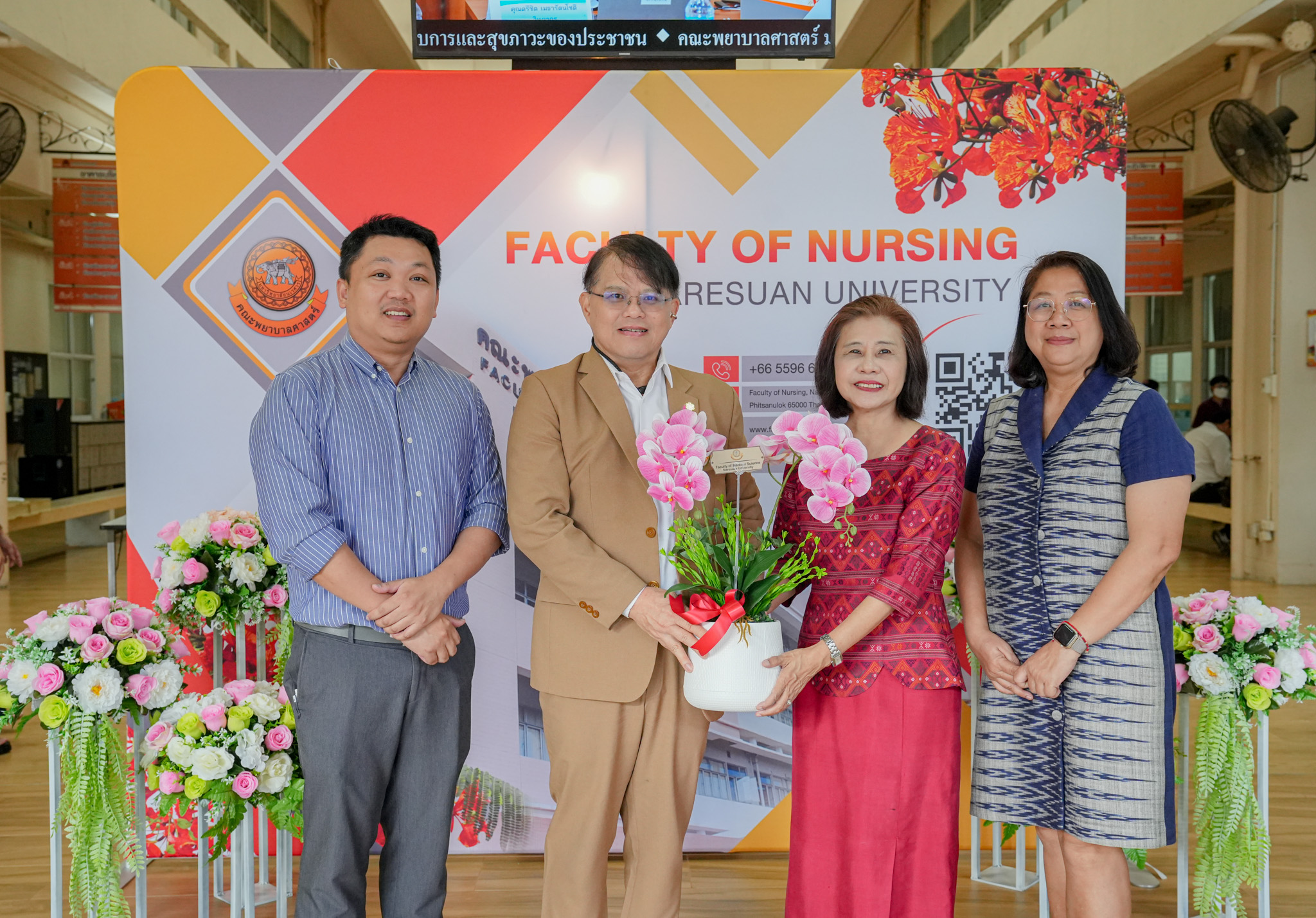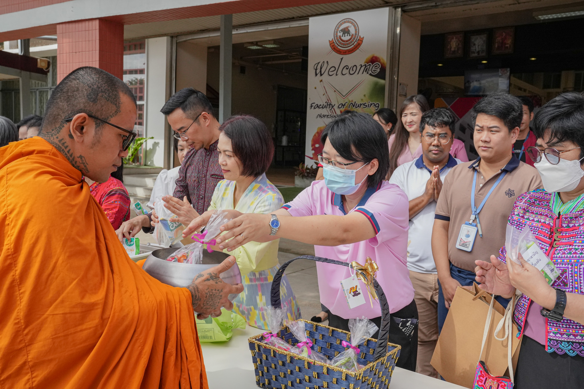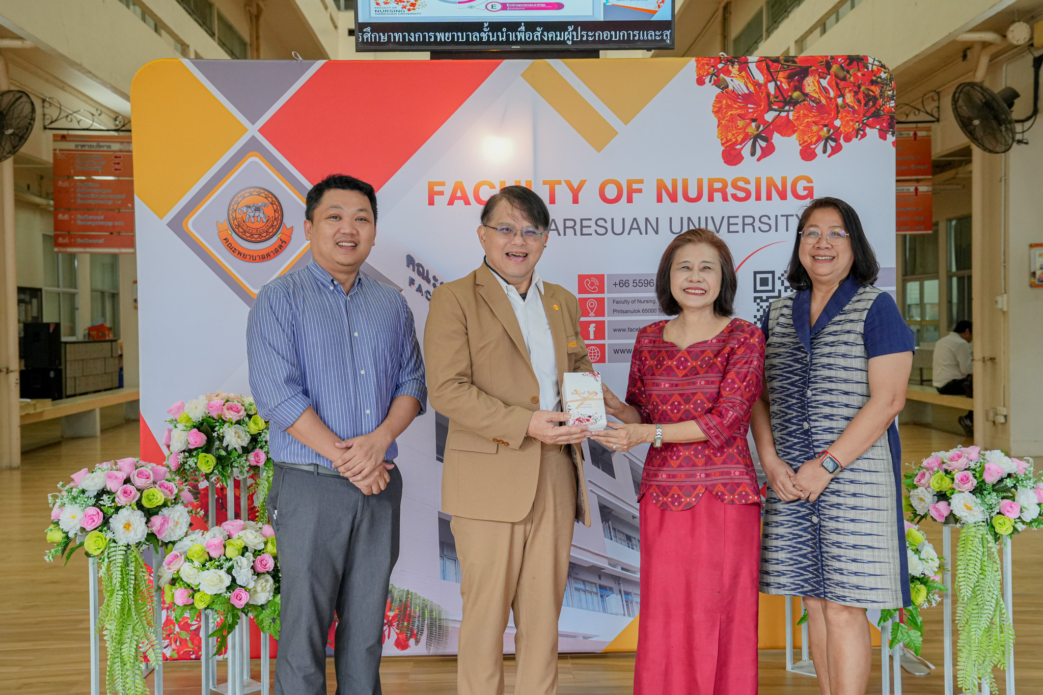 วันที่ 19 สิงหาคม 2568 รองศาสตราจารย์ ดร.สุขกิจ ยะโสธรศรีกุล คณบดีคณะวิทยาศาสตร์การแพทย์ พร้อมด้วย รองศาสตราจารย์ ดร.วรศักดิ์ แก้วก่อง รองคณบดีฝ่ายบริหารและส่งเสริมความยั่งยืน, รองศาสตราจารย์ ดร.สุภาพร ล้ำเลิศธน รองคณบดีฝ่ายวิจัยบัณฑิตวิทยาลัย และบุคลากร คณะวิทยาศาสตร์การแพทย์ ร่วมทำบุญตักบาตรข้าวสารอาหารแห้ง และมอบช่อดอกไม้แสดงความยินดี เนื่องในโอกาสวันคล้ายวันสถาปนาคณะพยาบาลศาสตร์ ครบรอบ 29 ปี ณ ลานอเนกประสงค์ ชั้น 1 คณะพยาบาลศาสตร์ มหาวิทยาลัยนเรศวร