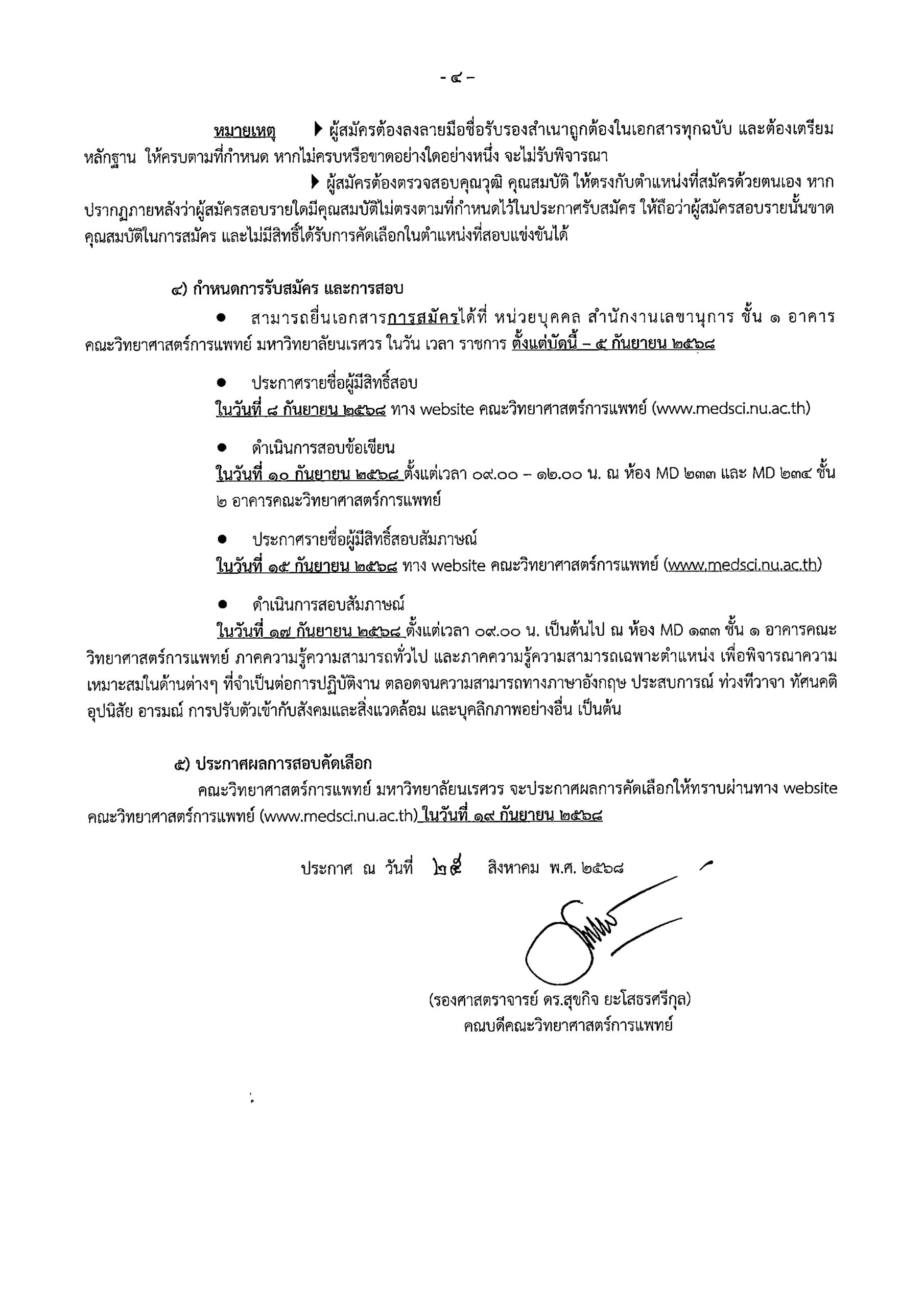 ประกาศ คณะวิทยาศาสตร์การแพทย์ มหาวิทยาลัยนเรศวร
