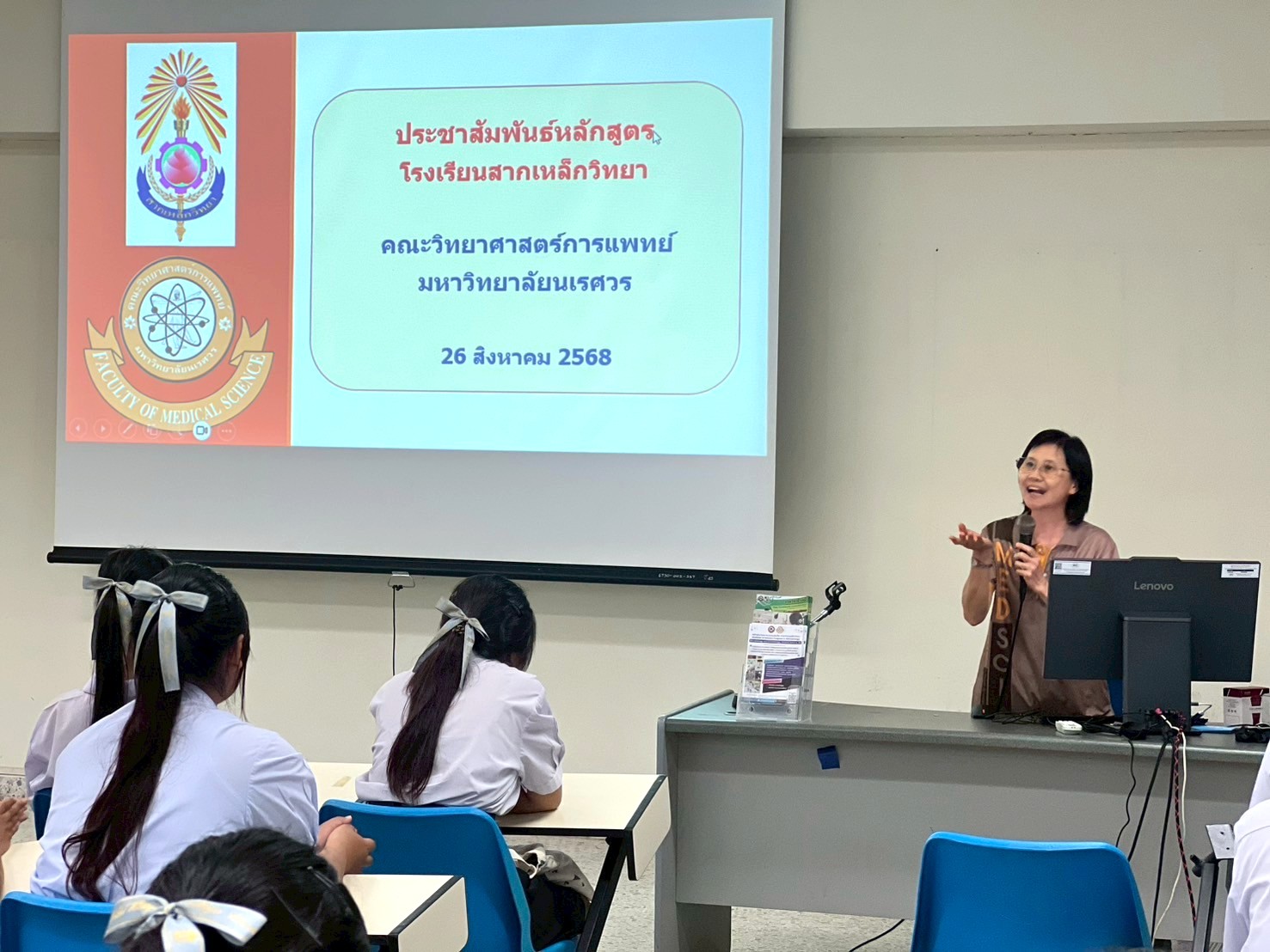 วันอังคารที่ 26 สิงหาคม 2568 หน่วยบริการวิชาการเพื่อชุมชน คณะวิทยาศาสตร์การแพทย์ ดำเนินการจัดกิจกรรมการให้ความรู้ทางวิชาการและแนะนำหลักสูตรของคณะวิทยาศาสตร์การแพทย์ ให้กับนักเรียนมัธยมศึกษาปีที่ 6 นักเรียนโรงเรียนสากเหล็กวิทยา จังหวัดพิจิตร ณ ห้องปฏิบัติการ MD 518/1 ภาควิชากายวิภาคศาสตร์ อาคารเรียนคณะวิทยาศาสตร์การแพทย์ มหาวิทยาลัยนเรศวร