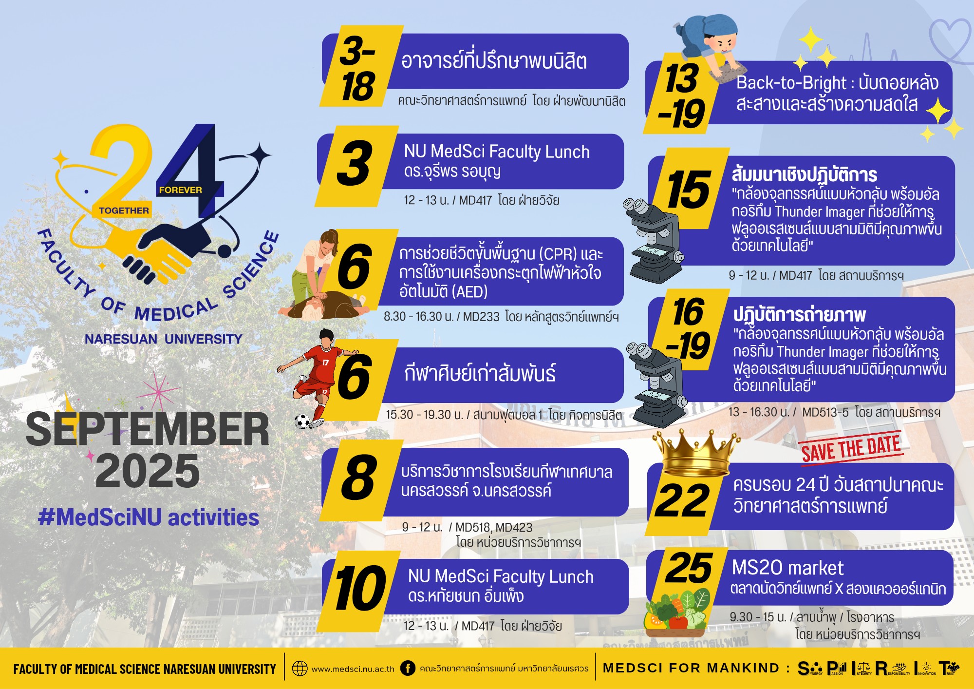 ติดตาม – ข่าวสารและกิจกรรมต่างๆ ได้ที่เพจ “คณะวิทยาศาสตร์การแพทย์ มหาวิทยาลัยนเรศวร” https://www.facebook.com/medicalsciencenu/