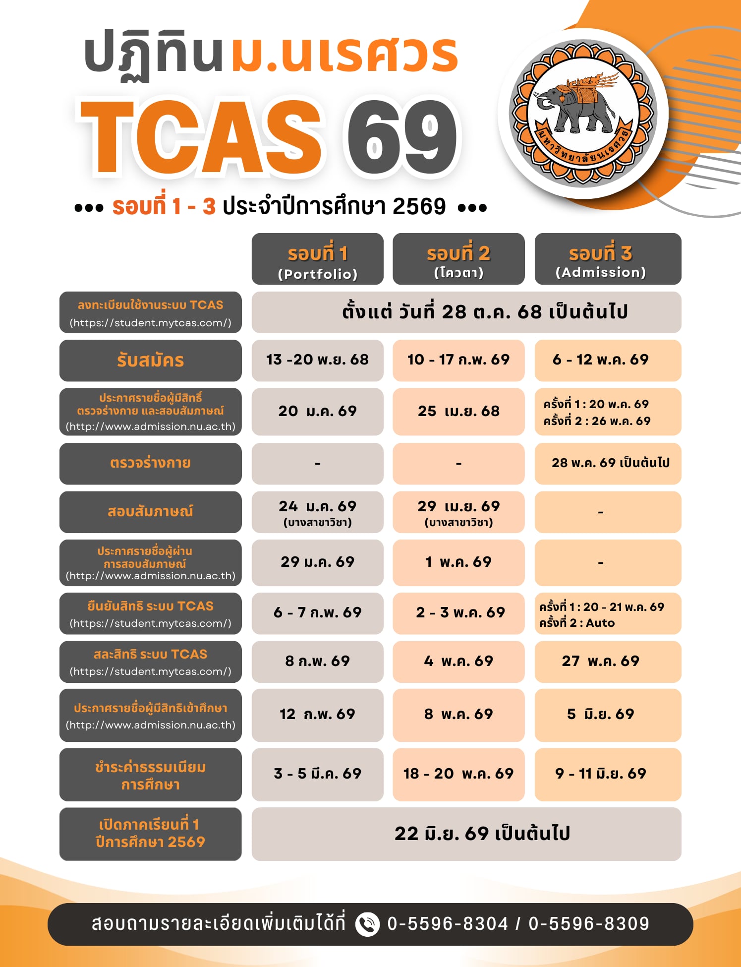 ม.นเรศวรเปิดรับสมัครนิสิตใหม่ ประจำปีการศึกษา 2569 (รอบที่ 1 – 3)Portfolio รับสมัคร 13 – 20 พฤศจิกายน 68