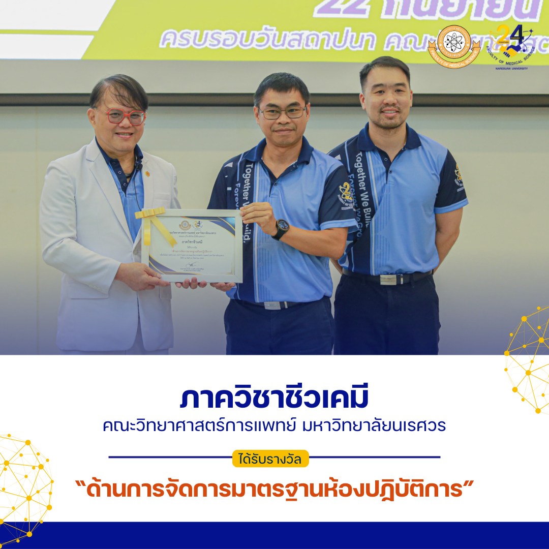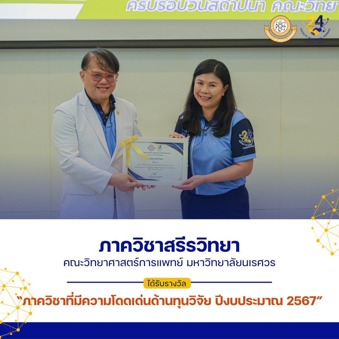 ภาควิชาจุลชีววิทยาและปรสิตวิทยา ภาควิชาสรีรวิทยา ภาควิชาชีวเคมี ภาควิชากายวิภาคศาสตร์ คณะวิทยาศาสตร์การแพทย์ มหาวิทยาลัยนเรศวร เนื่องในโอกาสครบรอบ 24 ปี วันสถาปนาคณะวิทยาศาสตร์การแพทย์ มหาวิทยาลัยนเรศวร