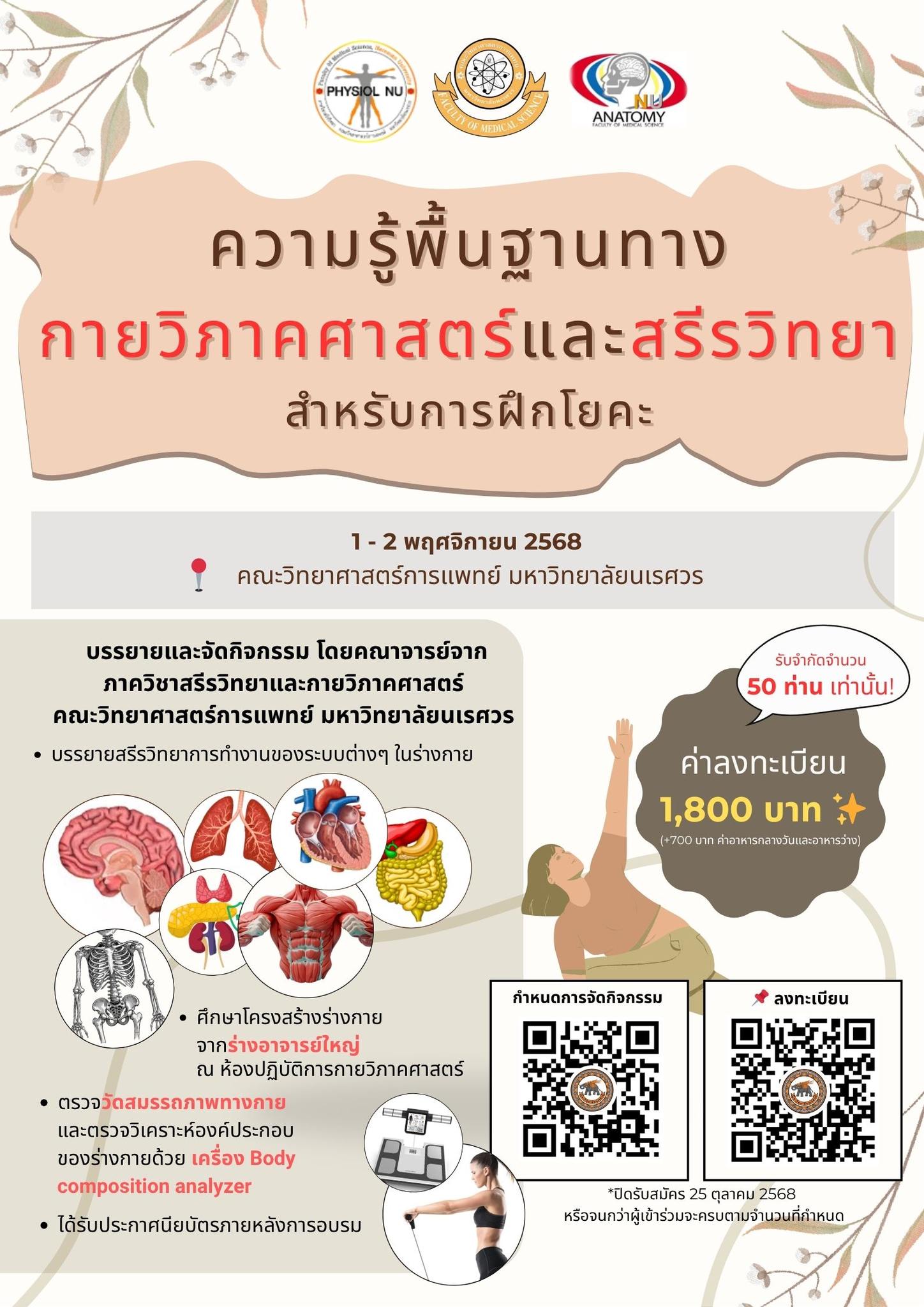 ขอเชิญผู้ที่สนใจเข้าร่วมกิจกรรมศึกษาดูงาน “ความรู้พื้นฐานทางกายวิภาคศาสตร์และสรีรวิทยาสำหรับการฝึกโยคะ”
