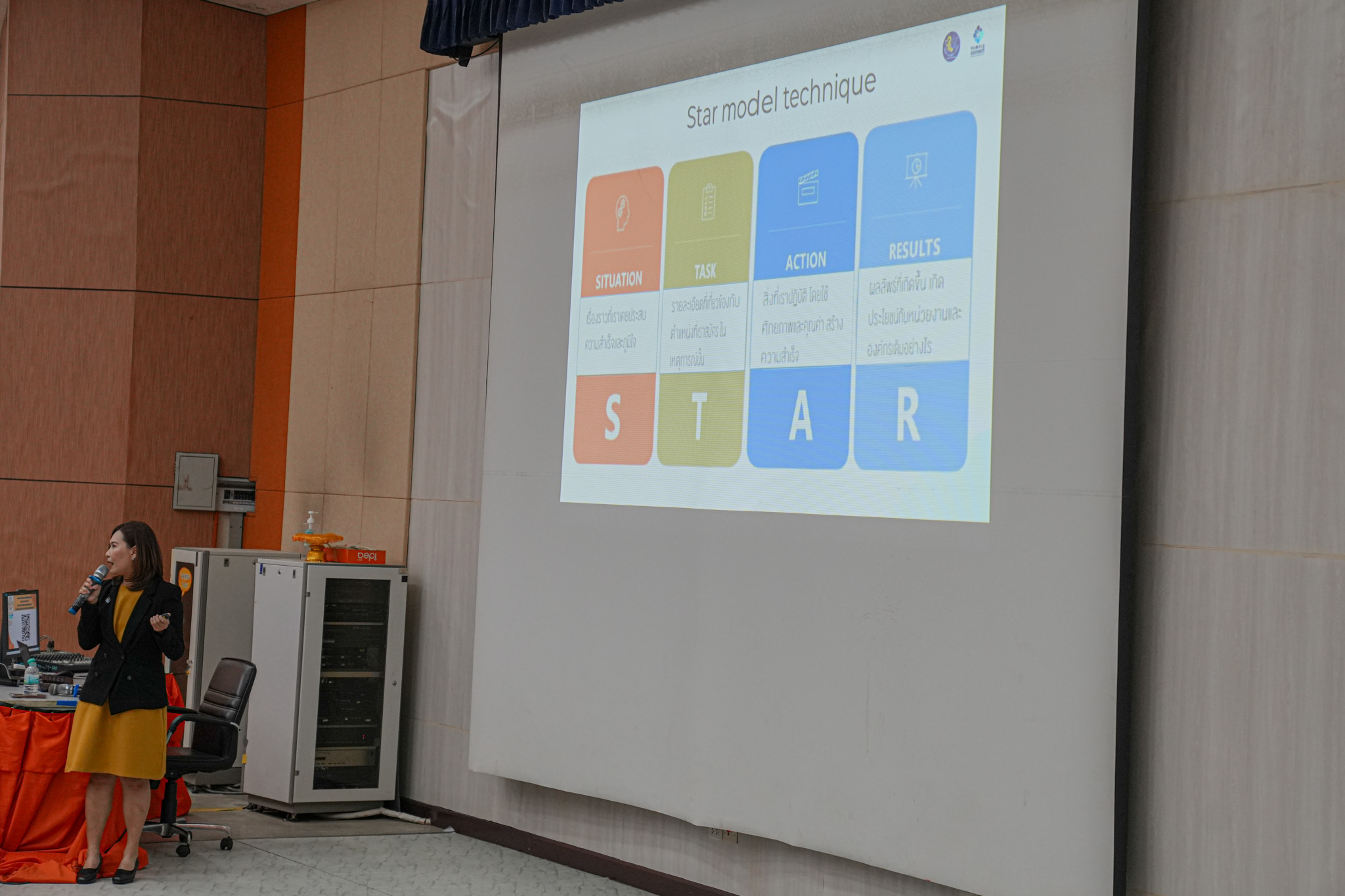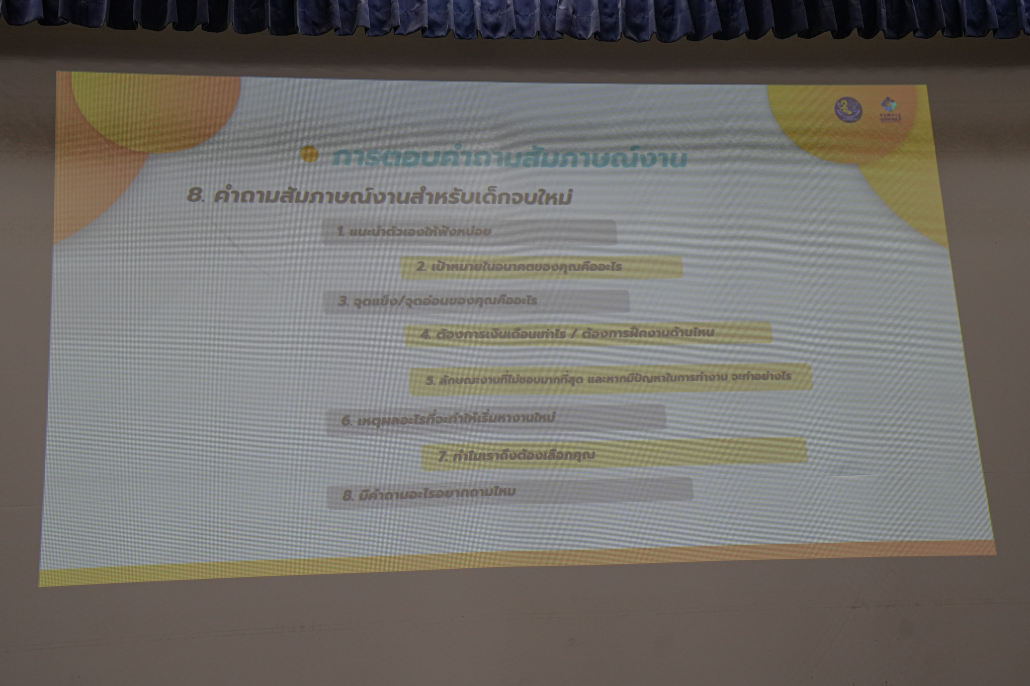 ปิดท้ายด้วยกิจกรรม สถานการณ์จำลองการสัมภาษณ์งาน (Mock-up Interview Scenario) ทั้งภาคเอกชนและภาควิชาการ เพื่อให้นิสิตได้ฝึกฝนจริงในบรรยากาศเสมือนจริง