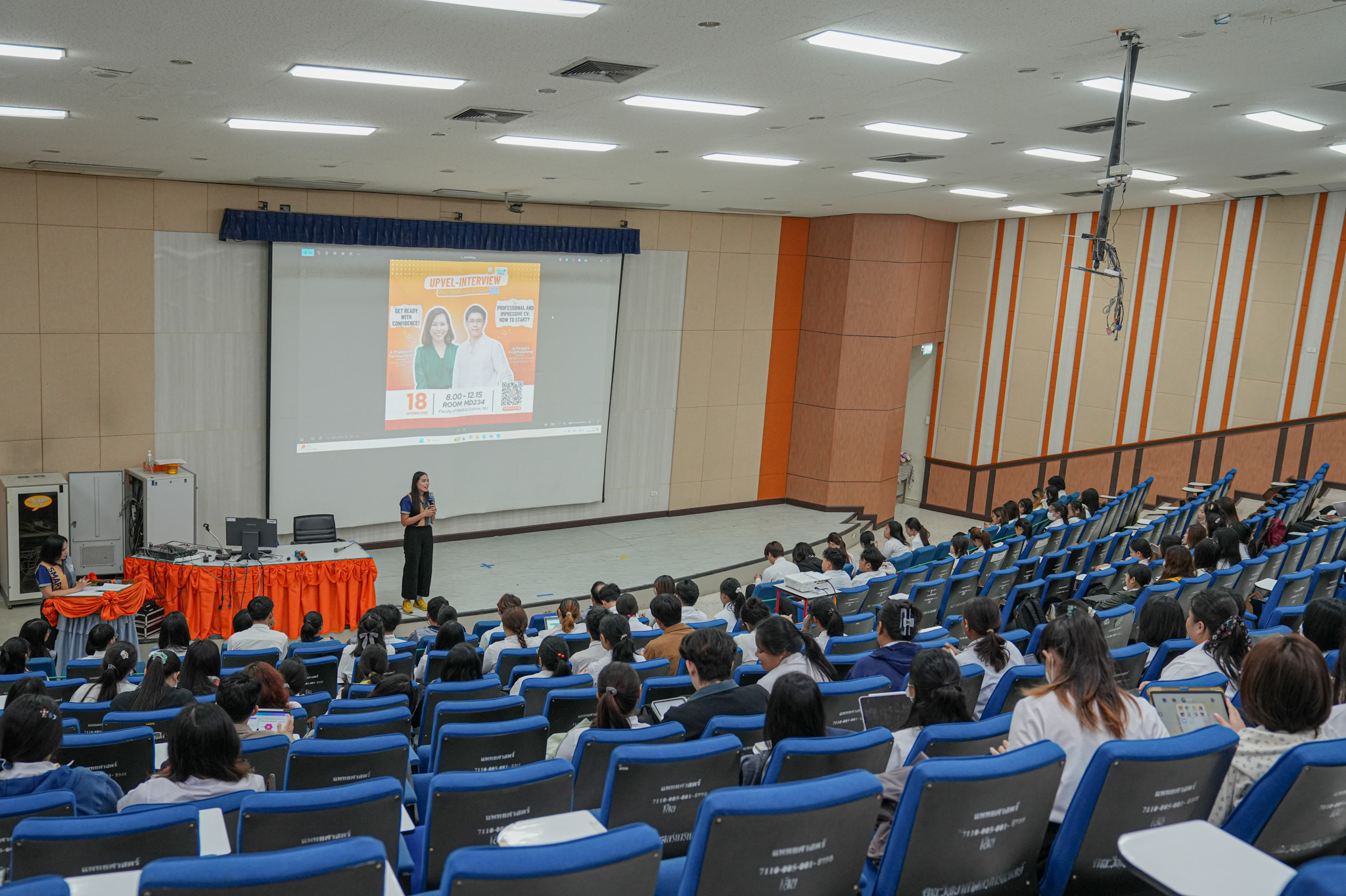 คณะวิทยาศาสตร์การแพทย์ จัดกิจกรรม “MEDSCI SMART DAY” โครงการส่งเสริมอัตลักษณ์ดอกโมก ภายใต้หัวข้อ “UPVEL-INTERVIEW: ติดอาวุธสัมภาษณ์งานยุค 5G” เมื่อวันเสาร์ที่ 18 ตุลาคม 2568 ณ ห้อง MD 234 เพื่อพัฒนาทักษะและเตรียมความพร้อมนิสิตก่อนก้าวสู่ตลาดแรงงาน