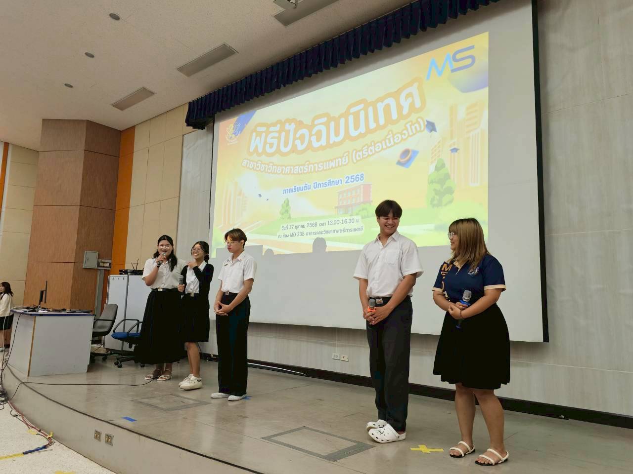 หลักสูตรวิทยาศาสตรบัณฑิต สาขาวิชาวิทยาศาสตร์การแพทย์ จัดกิจกรรม “ปัจฉิมนิเทศ” นิสิตสาขาวิชาวิทยาศาสตร์การแพทย์ (ตรีต่อเนื่องโท) รหัส 65 เพื่อเตรียมความพร้อมด้านบุคลิกภาพ การสมัครงาน และแนะแนวเส้นทางชีวิตหลังสำเร็จการศึกษา