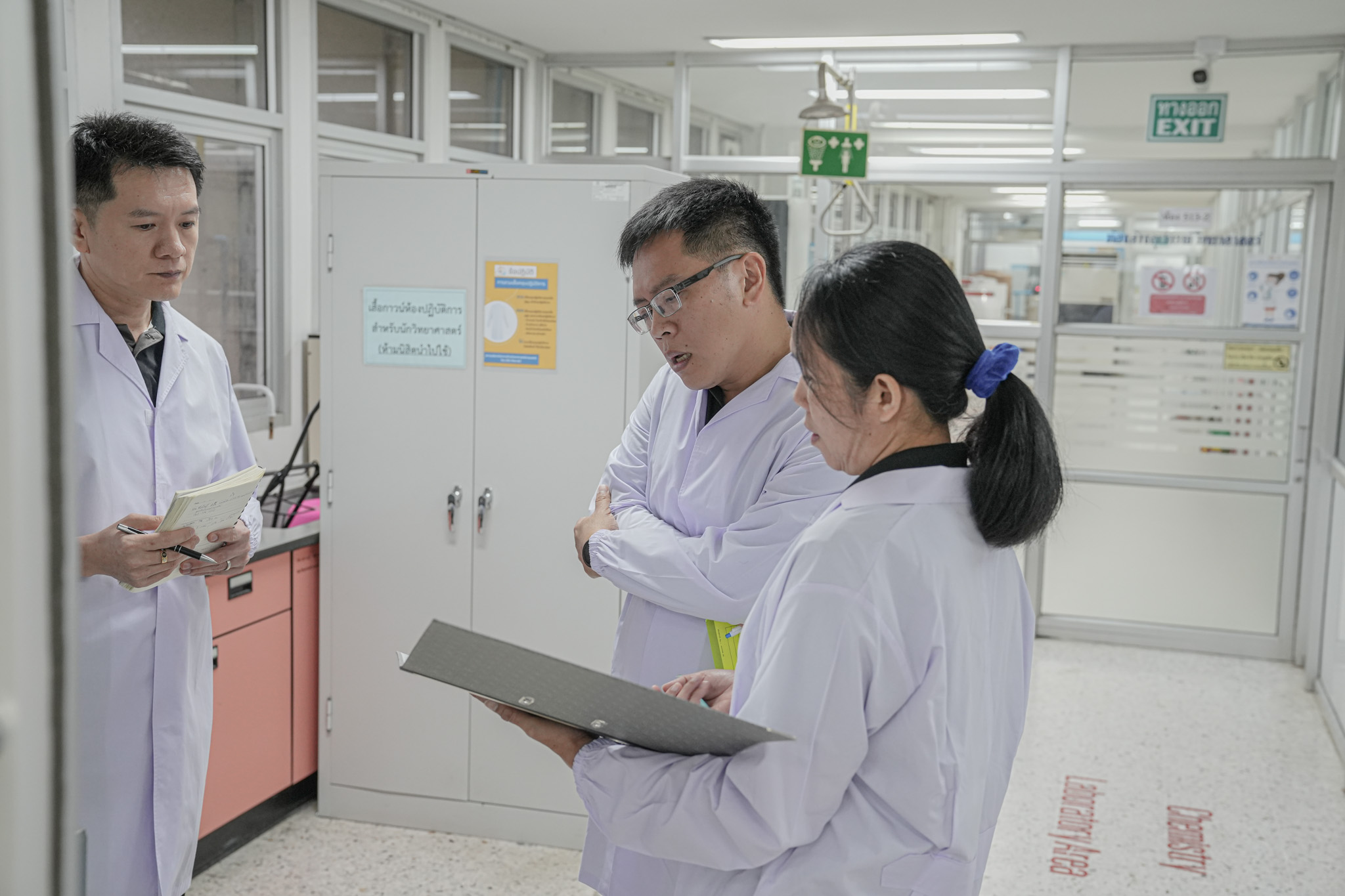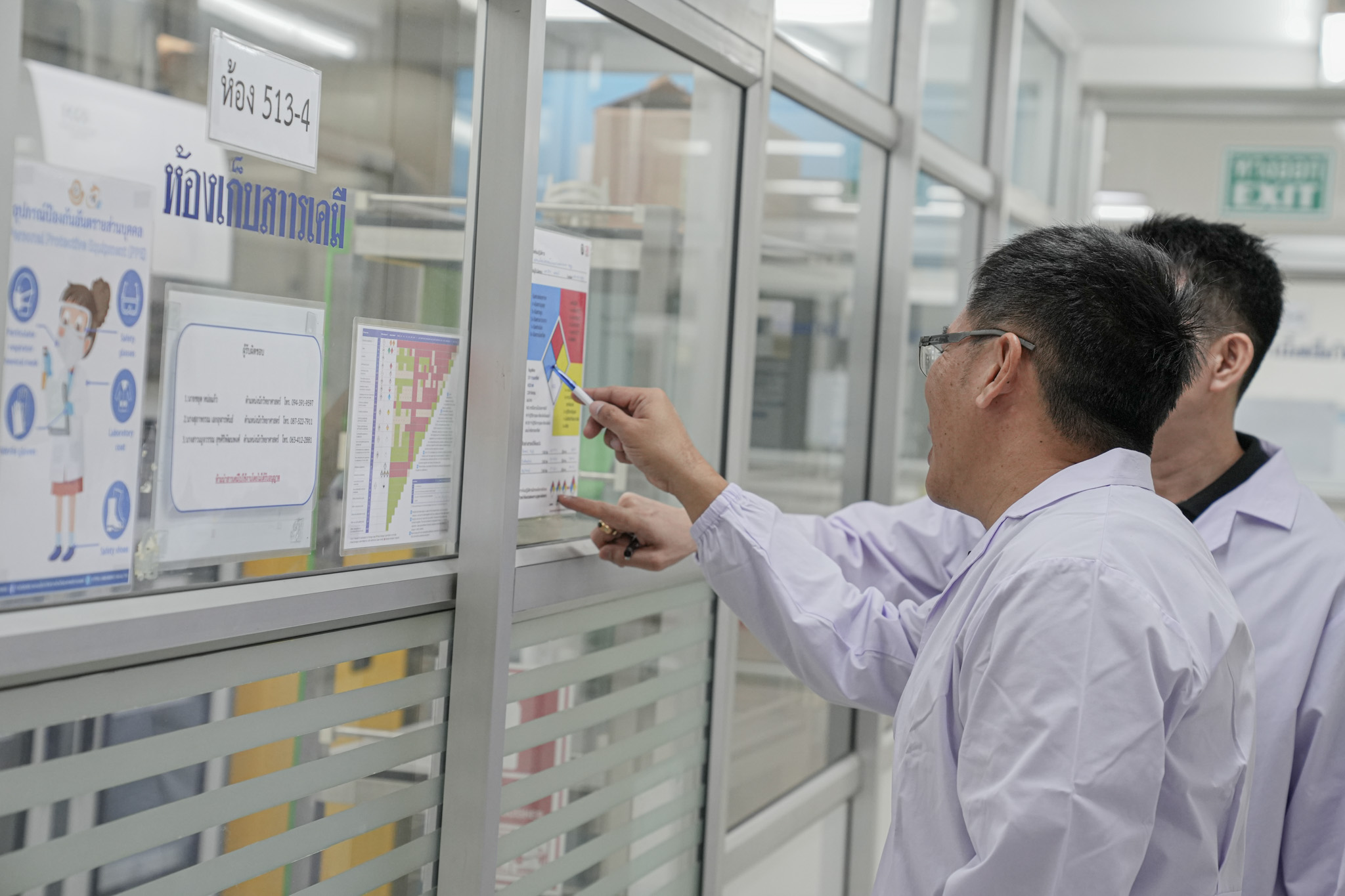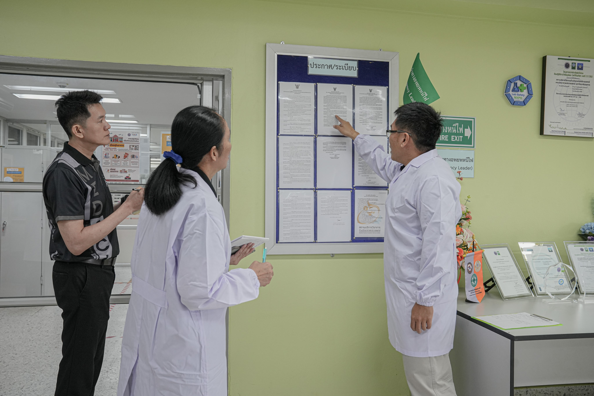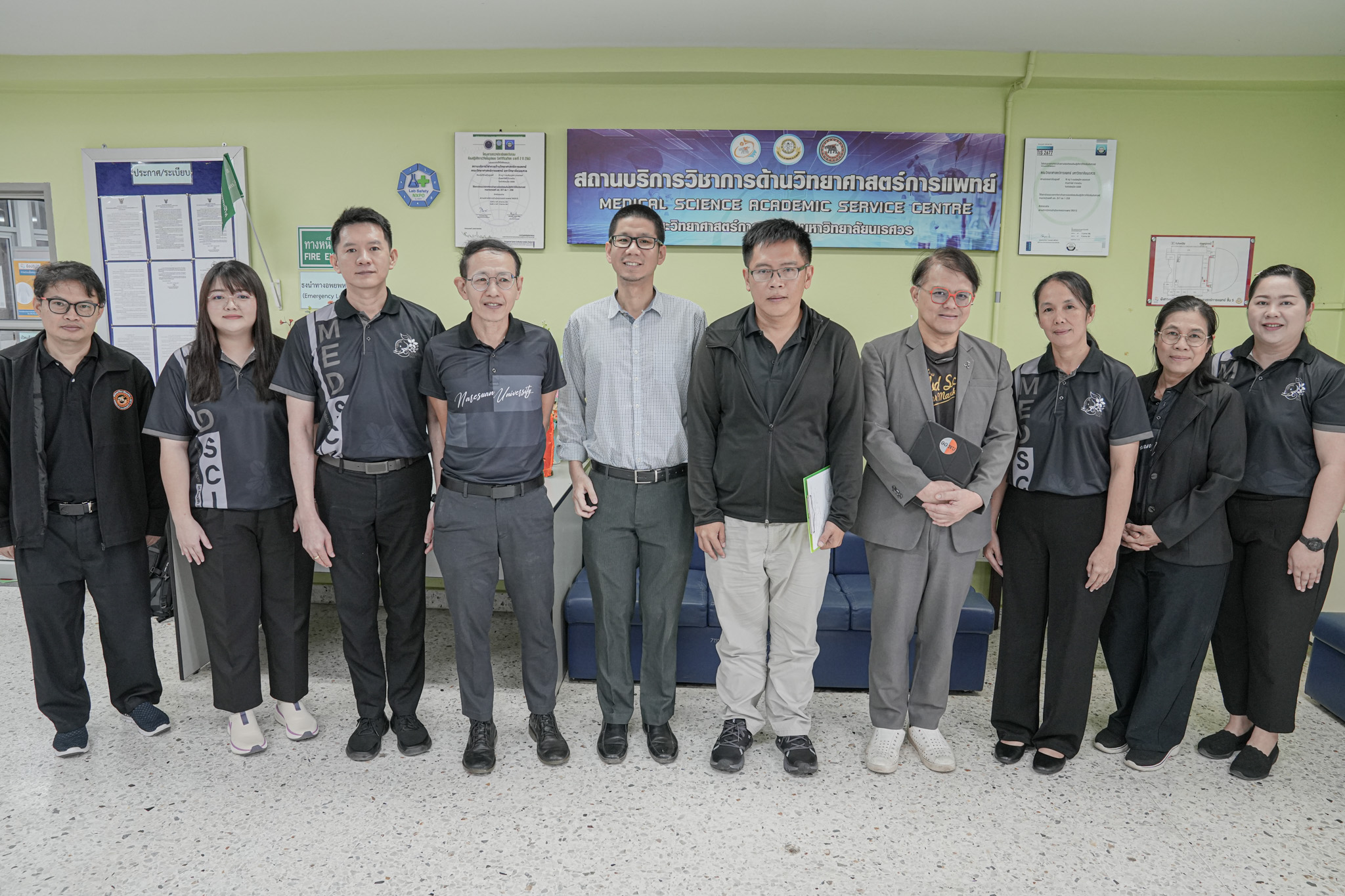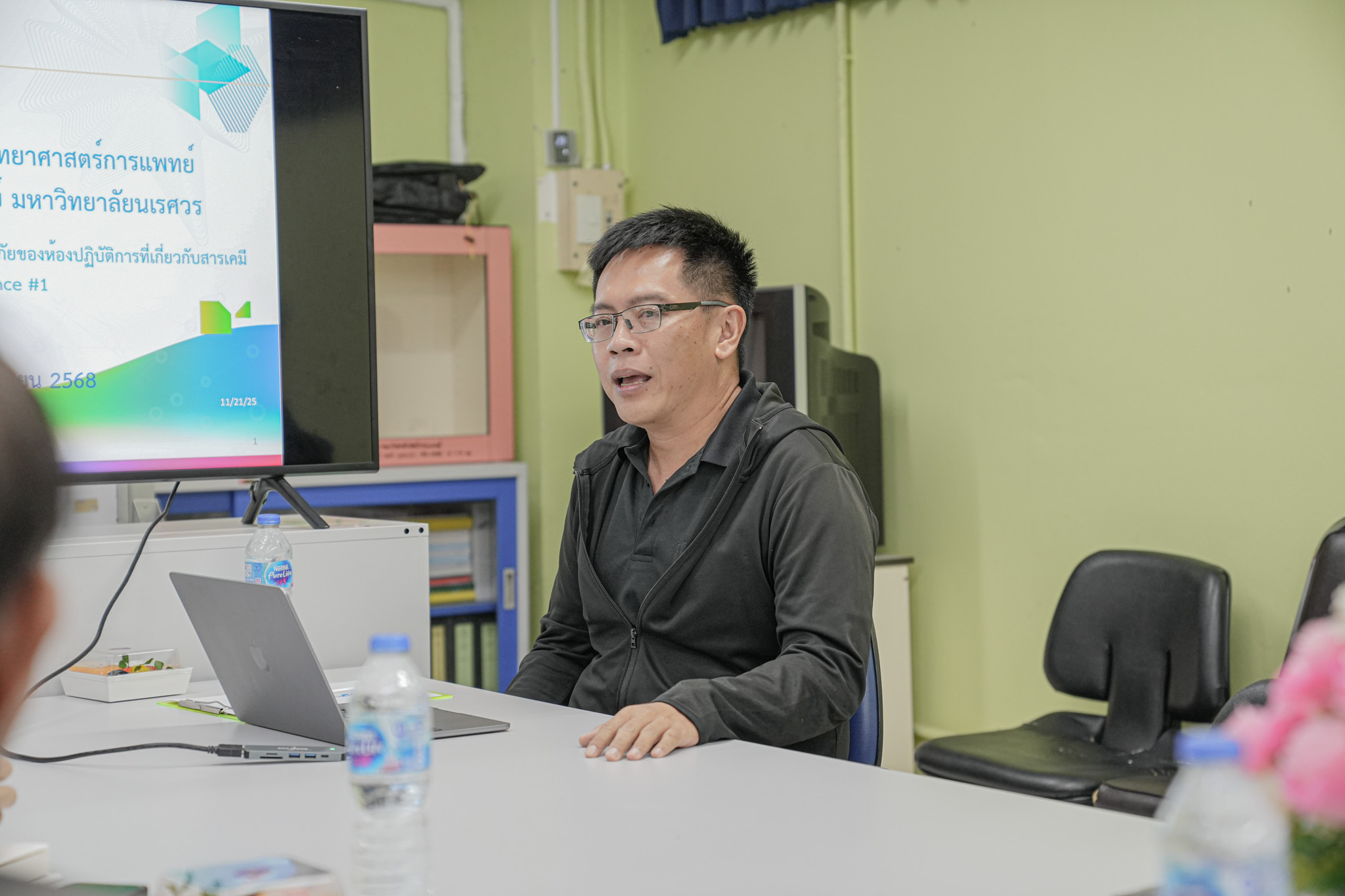 วันศุกร์ที่ 21 พฤศจิกายน 2568 รองศาสตราจารย์ ดร.สุขกิจ ยะโสธรศรีกุล (คณบดีคณะวิทยาศาสตร์การแพทย์) ผู้ช่วยศาสตราจารย์ ดร.ภาคภูมิ ทรัพย์สุนทร (รองคณบดีฝ่ายวิจัยและนวัตกรรม รักษาการผู้อำนวยการสถานบริการวิชาการด้านวิทยาศาสตร์การแพทย์) พร้อมด้วยบุคลากรสถานบริการวิชาการด้านวิทยาศาสตร์การแพทย์ ร่วมนำเสนอผลการดำเนินงานห้องปฏิบัติการ MD 513 ในรอบ 1 ปี ตามขอบข่ายที่ได้รับการรับรองมาตรฐาน มอก.2677 และข้อมูลการดำเนินงานตามระบบการจัดการด้านความปลอดภัยของห้องปฏิบัติการที่เกี่ยวกับสารเคมี (มอก.2677-2558) ณ สถานบริการวิชาการด้านวิทยาศาสตร์การแพทย์ คณะวิทยาศาสตร์การแพทย์ มหาวิทยาลัยนเรศวร