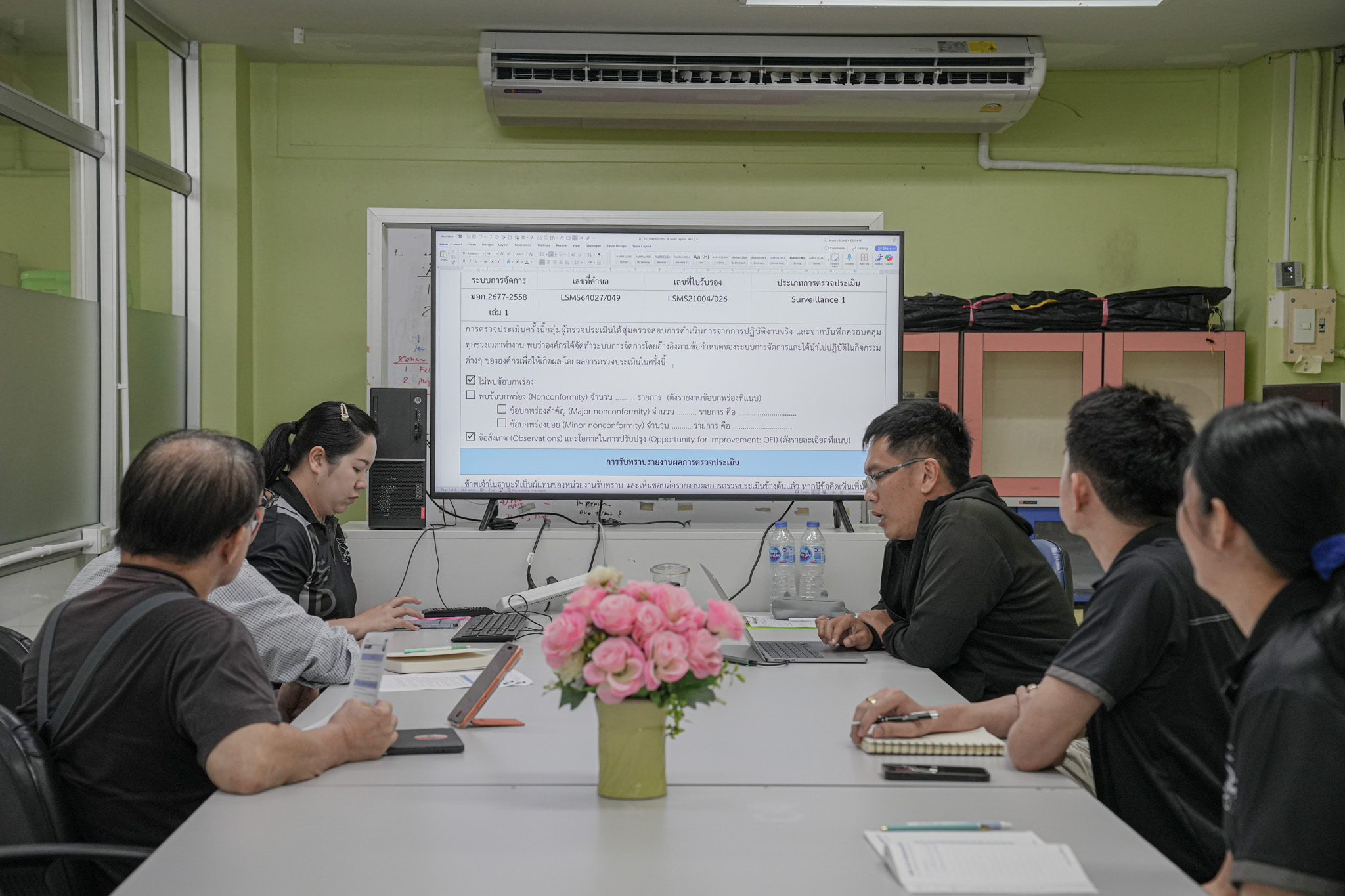 โดย คุณชุมพล ชัชชวลิตสกุล (หัวหน้ากลุ่มผู้ตรวจประเมิน) จากสถาบันรับรองมาตรฐานไอเอสโอ ซึ่งผลการตรวจประเมินครั้งนี้