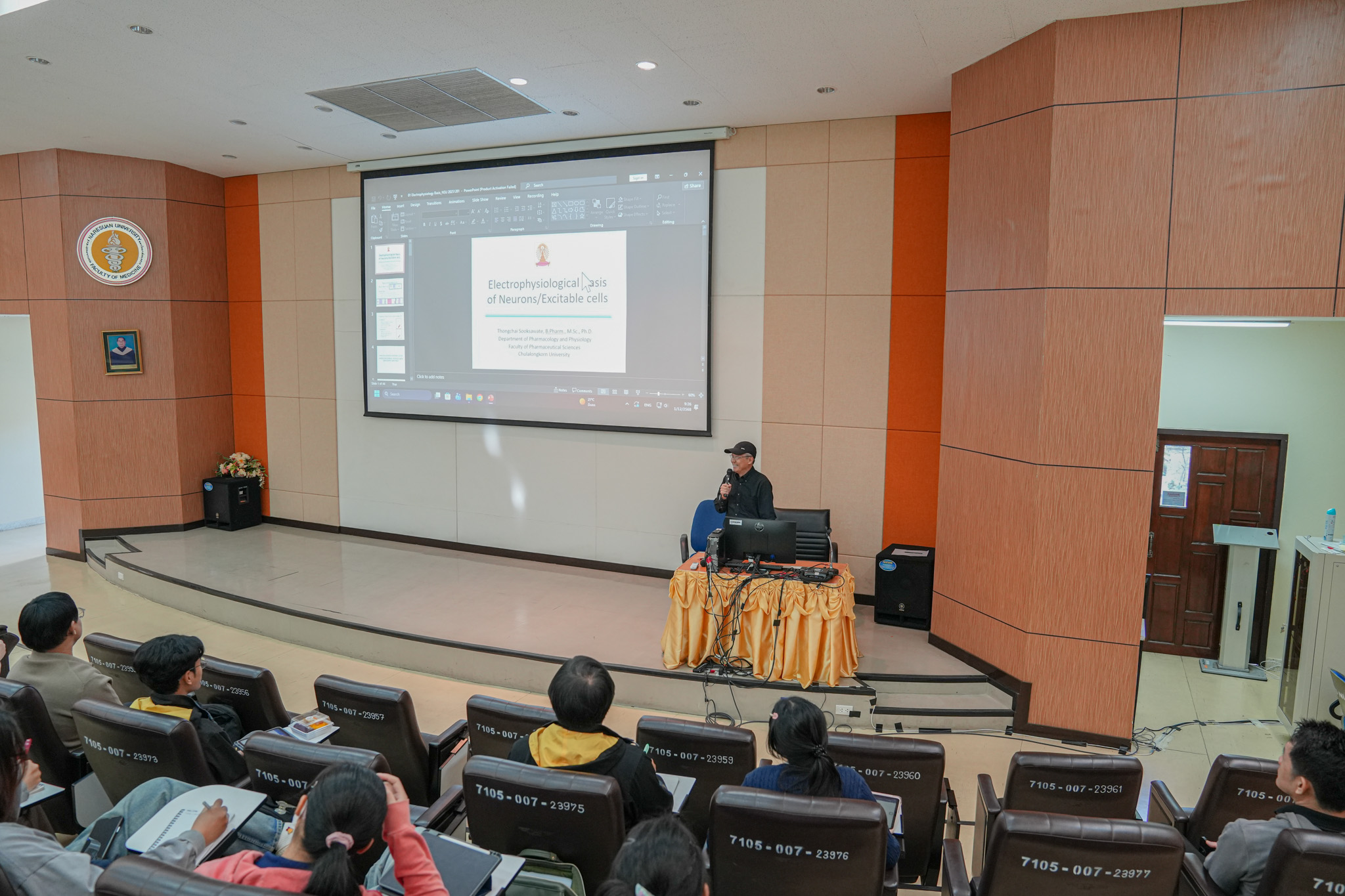 ผู้ช่วยศาสตราจารย์ ดร.ภาคภูมิ ทรัพย์สุนทร รองคณบดีฝ่ายวิจัยและนวัตกรรม พร้อมด้วย บุคลากรสถานบริการวิชาการด้านวิทยาศาสตร์การแพทย์ ร่วมกับภาควิชาสรีรวิทยา คณะวิทยาศาสตร์การแทพย์ ดำเนินการจัดโครงการอบรมเชิงปฏิบัติการด้านเครื่องมือวิทยาศาสตร์ หัวข้อเรื่อง “Patch Clamp Technique and Research Applications” ในระหว่างวันที่ 1 – 4 ธันวาคม 2568 โดยได้รับเกียรติจากวิทยากรผู้ทรงคุณวุฒิ ได้แก่ รองศาสตราจารย์ ดร.ภก.ธงชัย สุขเศวต (จากภาควิชาเภสัชวิทยาและสรีรวิทยา คณะเภสัชศาสตร์ จุฬาลงกรณ์มหาวิทยาลัย Department of Neuroscience, Graduate School of Medicine, Kyoto University) และทีมนักวิจัยมหาวิทยาลัยนเรศวร รองศาสตราจารย์ ดร.ภญ.กรองกาญจน์ ชูทิพย์ และ ดร.กิติณัฐ รอดทองดี (ภาควิชาสรีรวิทยา คณะวิทยาศาสตร์การแพทย์) และ ผู้ช่วยศาสตราจารย์ ดร.มณฑาทิพย์ ภูมิวณิชชา (ภาควิชาเทคโนโลยีหัวใจและทรวงอก คณะสหเวชศาสตร์ มหาวิทยาลัยนเรศวร) จัดโดย ห้างหุ้นส่วนจำกัด เอส สแคว เอ็นเตอร์ไพรส์) ณ ห้อง MD 237, ห้อง MD 502/1 และห้องปฏิบัติการ MD 502/2 อาคารเรียนคณะวิทยาศาสตร์การแพทย์ มหาวิทยาลัยนเรศวร