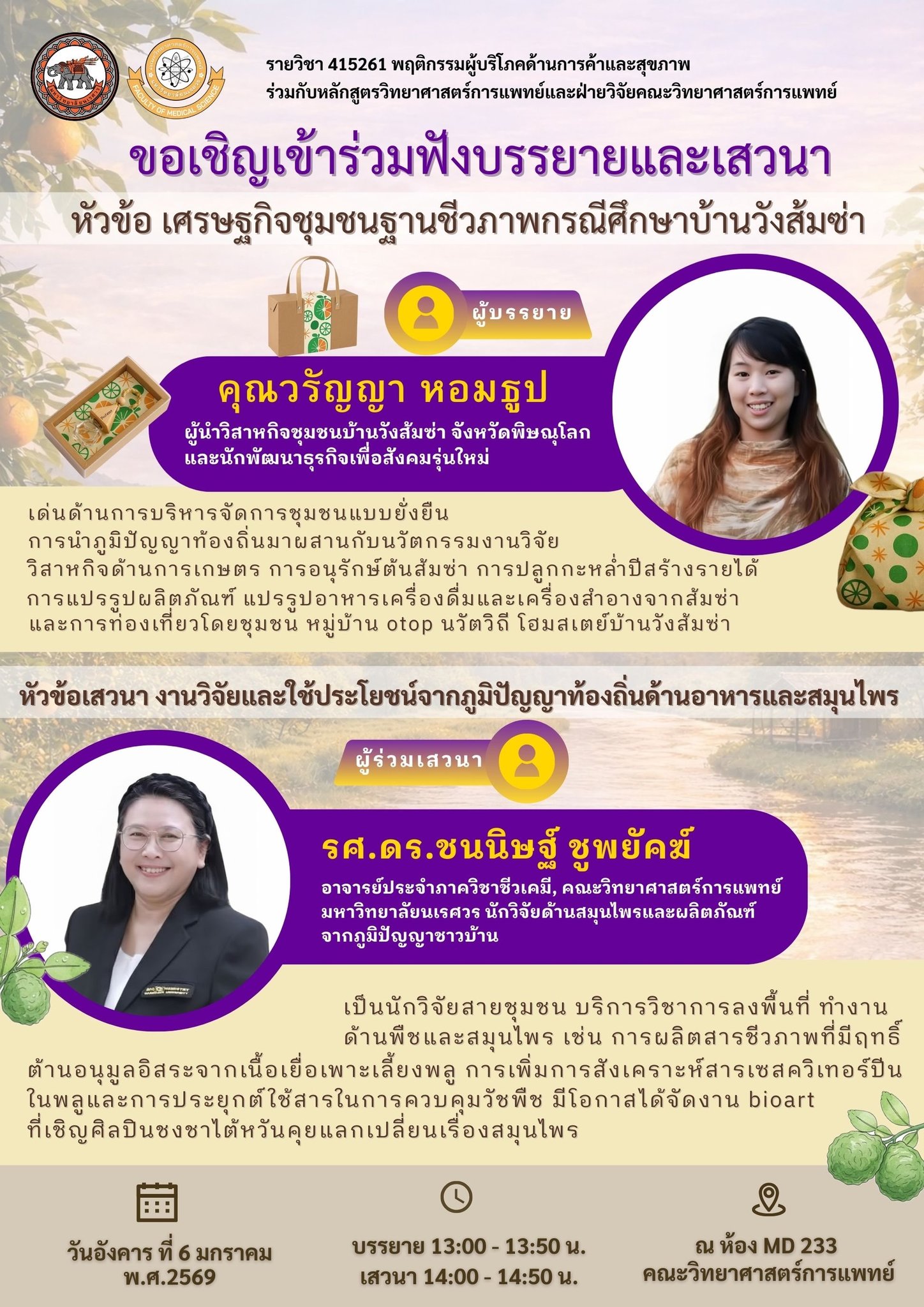 ขอเชิญเข้าร่วมฟังบรรยายและเสวนา