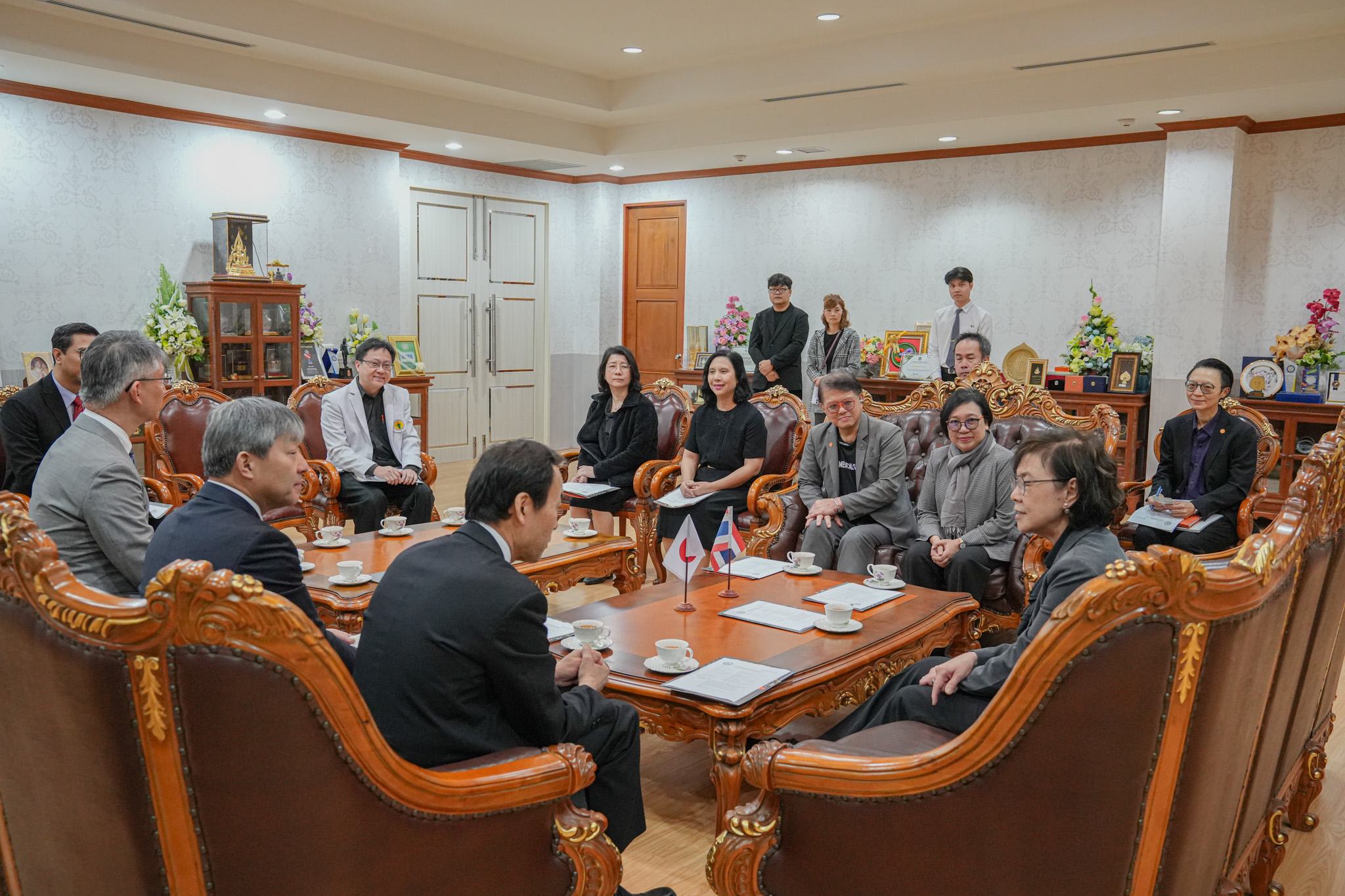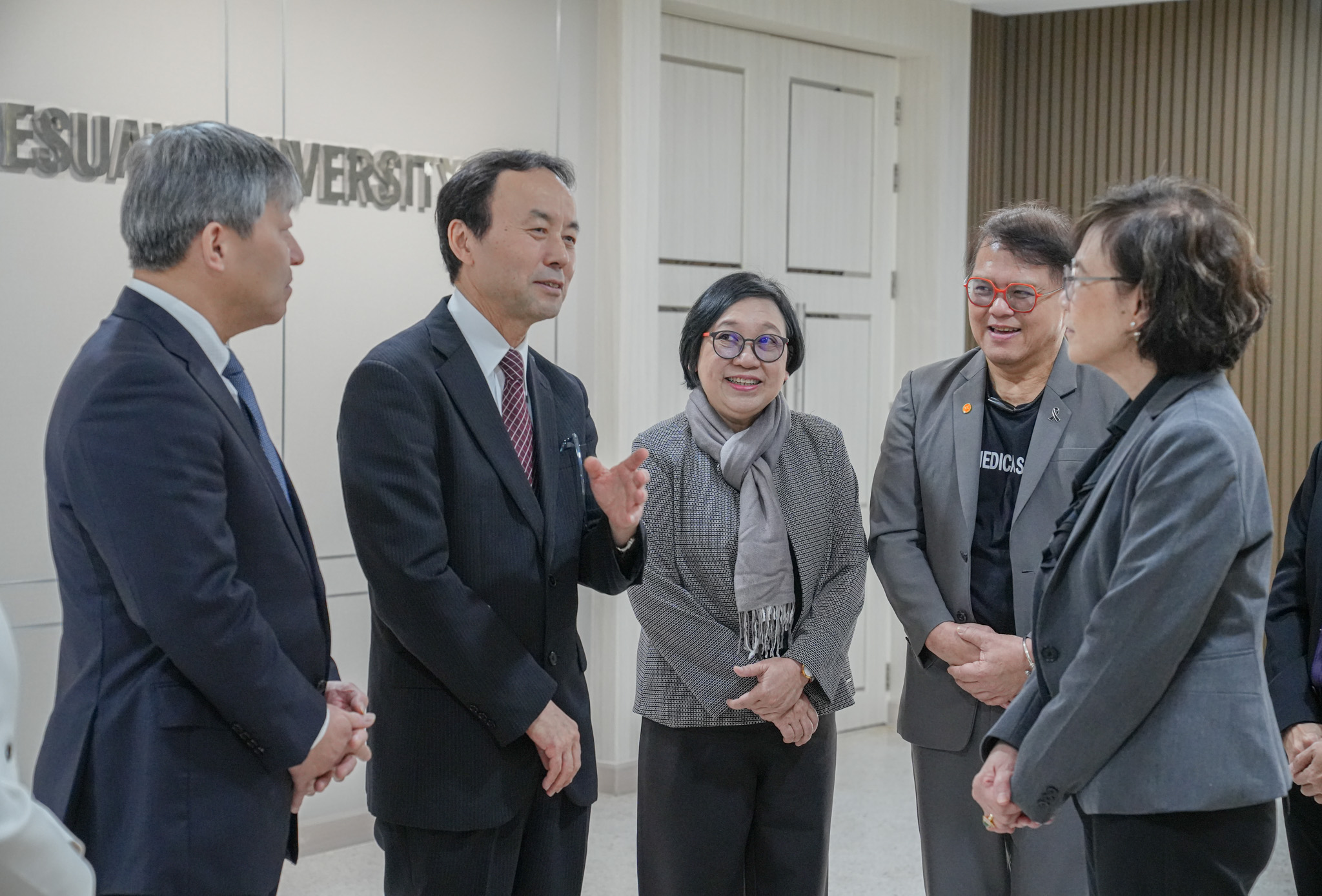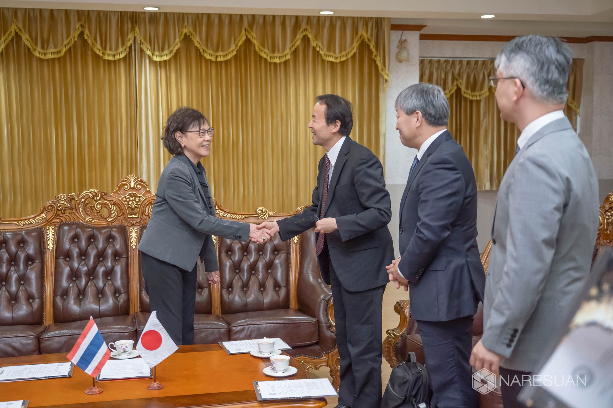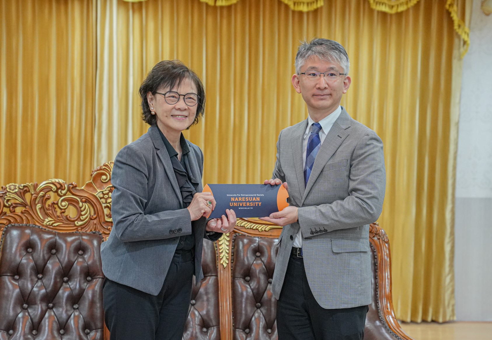 วันที่ 12 มกราคม 2569 รองศาสตราจารย์ ดร.สุขกิจ ยะโสธรศรีกุล คณบดีคณะวิทยาศาสตร์การแพทย์ พร้อมด้วย ศาสตราจารย์ ดร.สุทิสา ถาน้อย และบุคลากรคณะวิทยาศาสตร์การแพทย์ ร่วมต้อนรับคณะผู้แทนจากมหาวิทยาลัยคานาซาวะ (Kanazawa University: KU) ประเทศญี่ปุ่น นำโดยศาสตราจารย์ ดร.โอซามุ โฮริ (Prof. Dr. Osamu Hori) คณบดีวิทยาลัยแพทยศาสตร์เภสัชศาสตร์ และวิทยาศาสตร์สุขภาพ ในโอกาสเข้าพบ รองศาสตราจารย์ ดร.ศรินทร์ทิพย์ แทนธานี รักษาราชการแทนอธิการบดีมหาวิทยาลัยนเรศวร เพื่อหารือความร่วมมือทางวิชาการด้านการแพทย์ ณ ห้องสุพรรณกัลยา สำนักงานอธิการบดี มหาวิทยาลัยนเรศวร