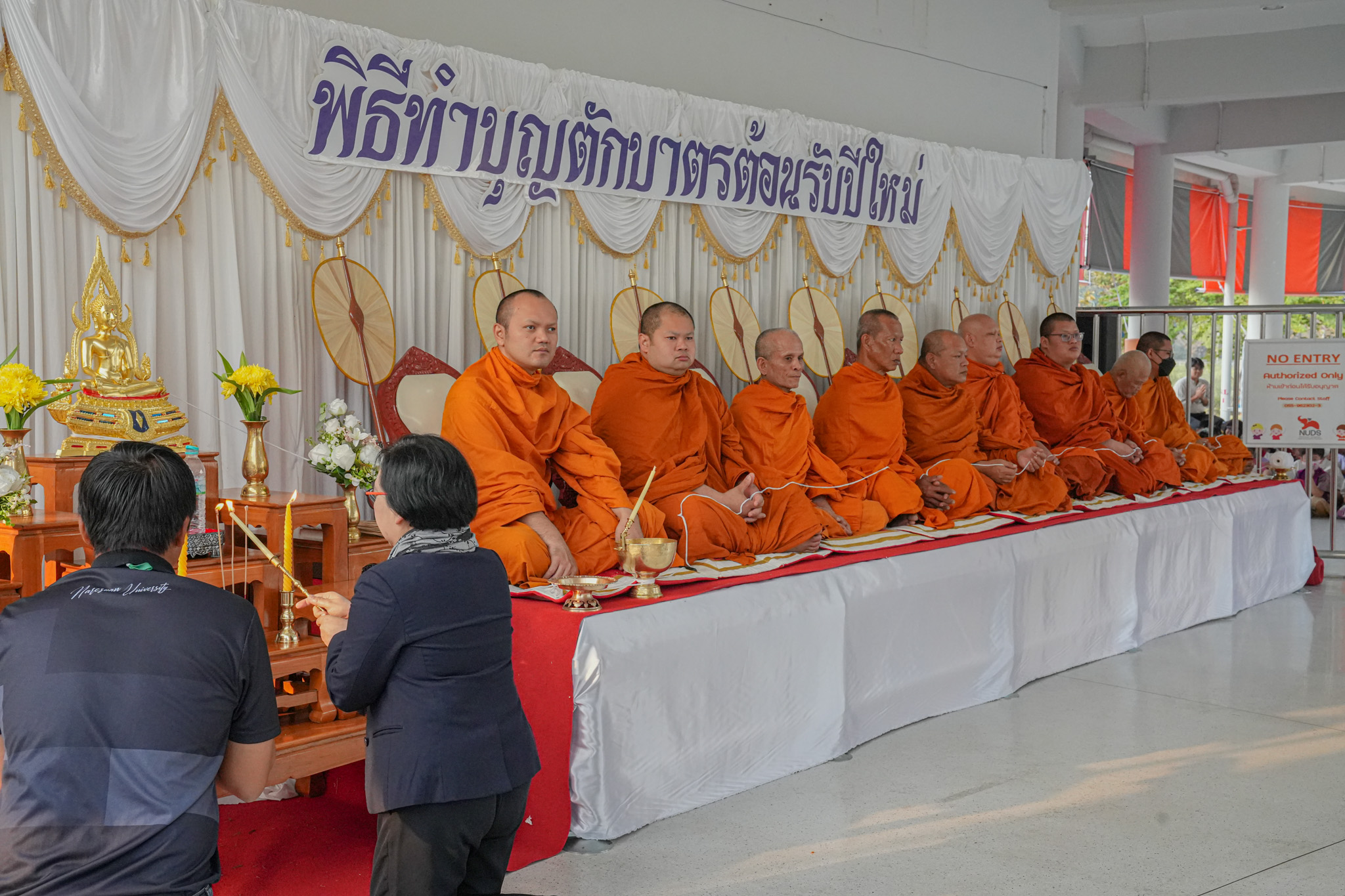 วันที่ 16 มกราคม 2569 รองศาสตราจารย์ ดร.สุขกิจ ยะโสธรศรีกุล คณบดีคณะวิทยาศาสตร์การแพทย์ พร้อมด้วย รองศาสตราจารย์ ดร.วรศักดิ์ แก้วก่อง รองคณบดีฝ่ายบริหารและส่งเสริมความยั่งยืน และบุคลากรคณะวิทยาศาสตร์การแพทย์ ร่วมทำบุญตักบาตร เนื่องในโอกาสวันขึ้นปีใหม่ 2569 เพื่อความเป็นสิริมงคลและเสริมสร้างขวัญกำลังใจในการปฏิบัติงาน กิจกรรมดังกล่าวจัดขึ้น ณ อาคารคชาธาร 2 โรงเรียนอนุบาลและประถมสาธิตมหาวิทยาลัยนเรศวร