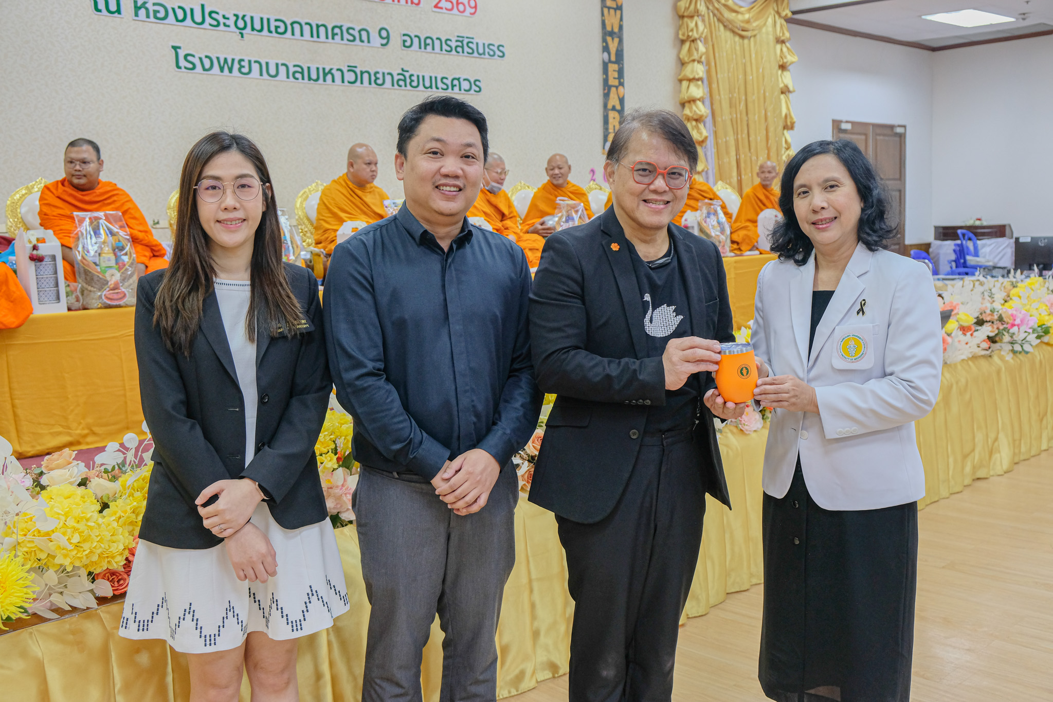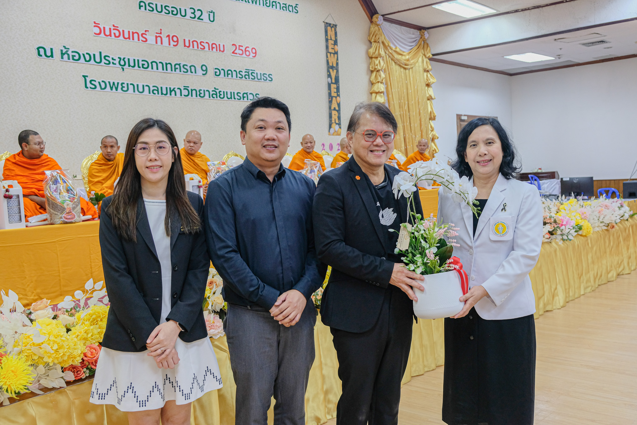 เมื่อวันที่ 19 มกราคม 2569 รองศาสตราจารย์ ดร.สุขกิจ ยะโสธรศรีกุล คณบดีคณะวิทยาศาสตร์การแพทย์ พร้อมด้วย รองศาสตราจารย์ ดร.วรศักดิ์ แก้วก่อง รองคณบดีฝ่ายบริหารและส่งเสริมความยั่งยืน, ดร.สุภัทรา คันทรง ผู้ช่วยคณบดี และบุคลากรคณะวิทยาศาสตร์การแพทย์ ร่วมทำบุญตักบาตรข้าวสารอาหารแห้ง และมอบช่อดอกไม้แสดงความยินดี เนื่องในโอกาสวันคล้ายวันสถาปนาคณะแพทยศาสตร์ ครบรอบ 32 ปี ณ ห้องประชุมเอกาทศรถ 9 ชั้น 3 อาคารสิรินธร โรงพยาบาลมหาวิทยาลัยนเรศวร