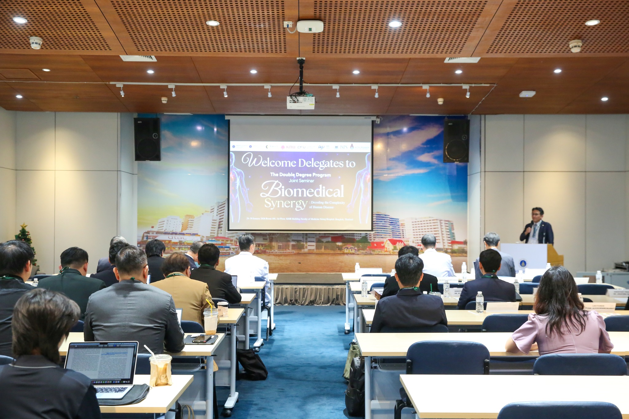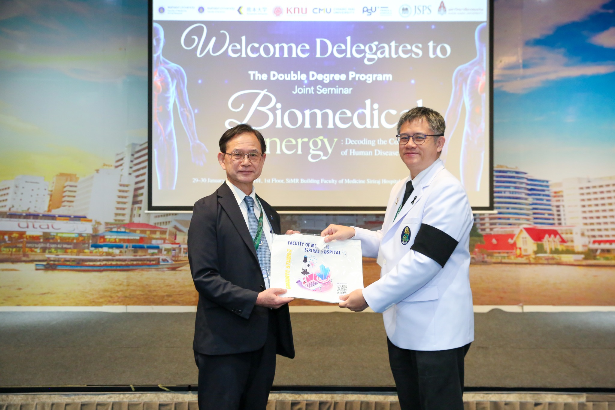 วันที่ 29-30 มกราคม 2569 ที่ผ่านมา รองศาสตราจารย์ ดร.สุขกิจ ยะโสธรศรีกุล คณบดีคณะวิทยาศาสตร์การแพทย์ พร้อมด้วย รองศาสตราจารย์ ดร.วรศักดิ์ แก้วก่อง ได้เข้าร่วมการประชุม Double Degree Program (DDP) conference 2026 ภายใต้หัวข้อ Biomedical Synergy: Decoding the Complexity of Human Disease ณ คณะแพทยศาสตร์ศิริราชพยาบาล มหาวิทยาลัยมหิดล