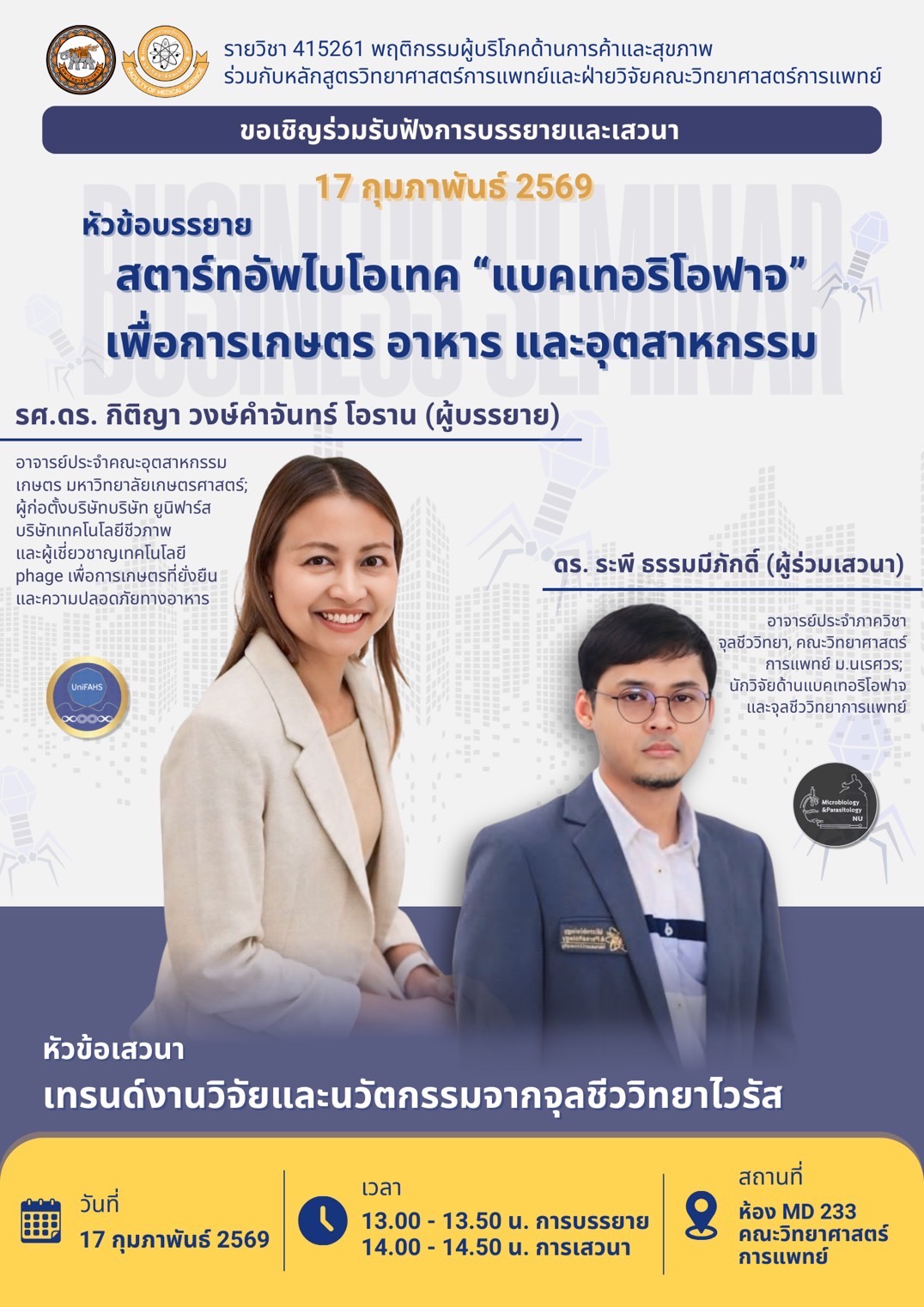 หัวข้อ “สตาร์ทอัพไบโอเทค แบคเทอริโอฟาจ เพื่อการเกษตร อาหาร และอุตสาหกรรม”