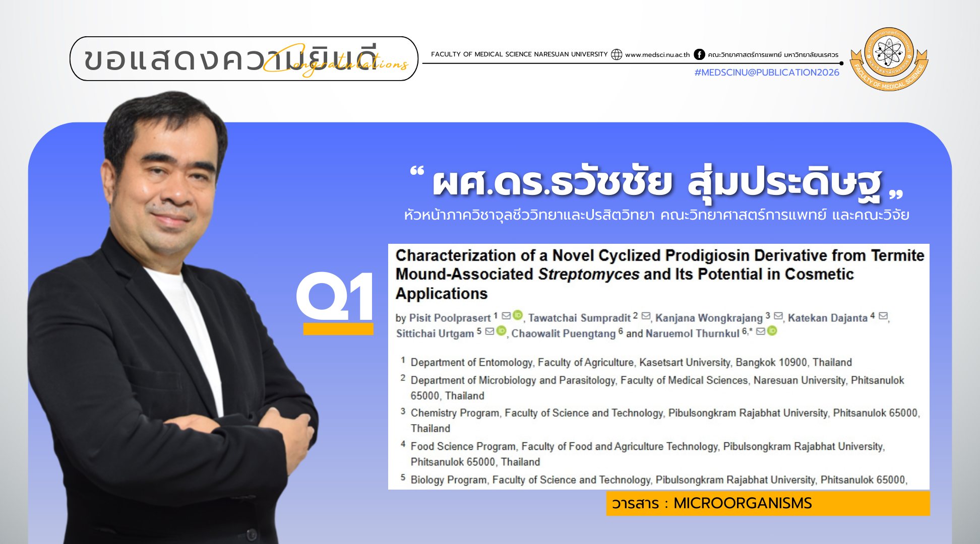 เรื่อง “Characterization of a Novel Cyclized Prodigiosin Derivative from Termite Mound-Associated Streptomyces and Its Potential in Cosmetic Applications”
