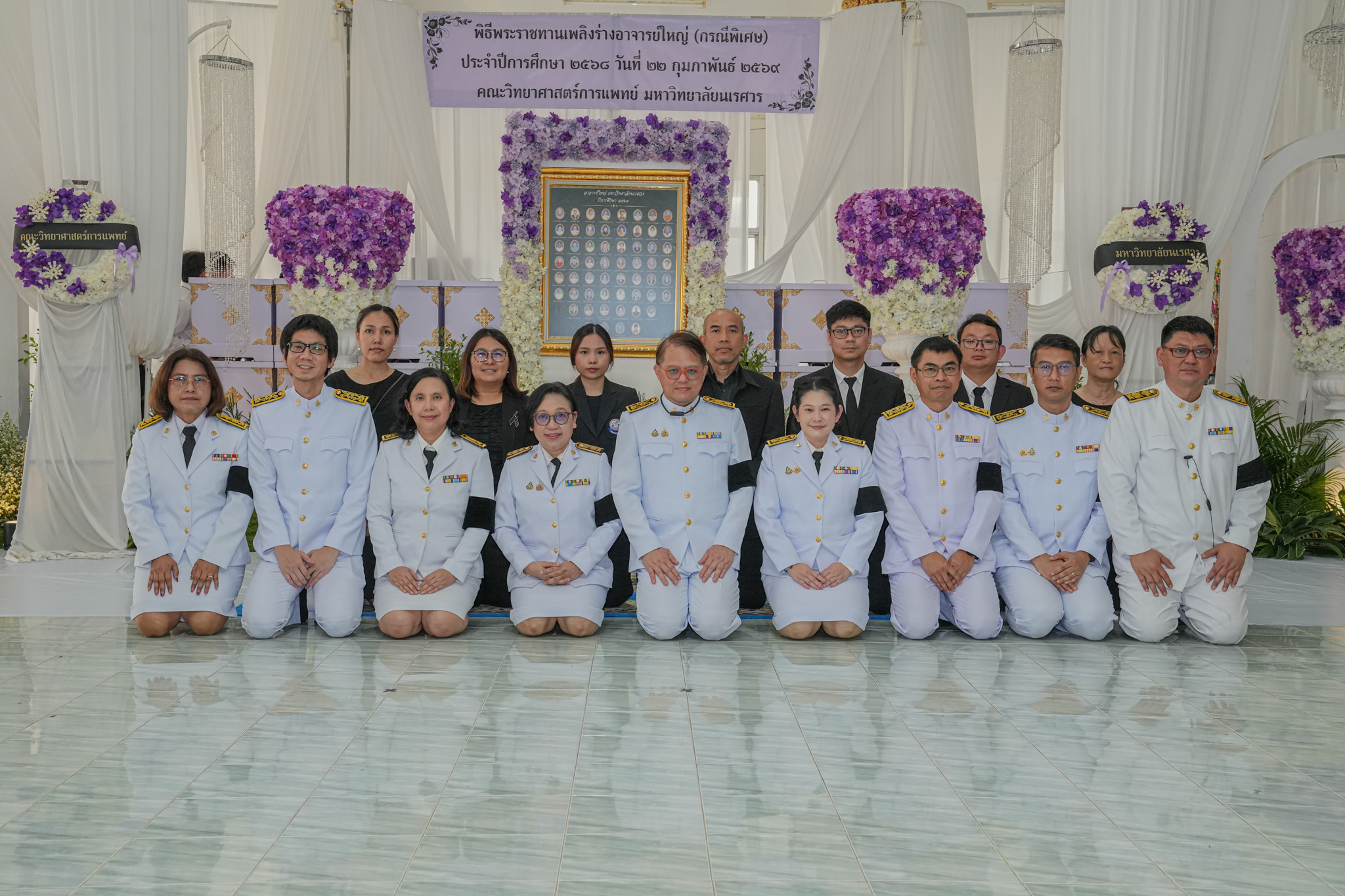 วันที่ 22 กุมภาพันธ์ 2569 ภาควิชากายวิภาคศาสตร์ คณะวิทยาศาสตร์การแพทย์ มหาวิทยาลัยนเรศวร และนิสิตในสาขาวิทยาศาสตร์สุขภาพ ร่วมกันจัดโครงการพิธีพระราชทานเพลิงร่างอาจารย์ใหญ่ (เป็นกรณีพิเศษ) ประจำปีการศึกษา 2568 เป็นการภายใน ณ เมรุวัดศรีรัตนาราม (วัดจูงนาง) ตำบลท่าทอง อำเภอเมือง จังหวัดพิษณุโลก ซึ่งมีร่างอาจารย์ใหญ่เข้าพิธีพระราชทานเพลิงร่างอาจารย์ใหญ่ จำนวน 57 ร่าง พร้อมทั้งได้รับการอุปถัมภ์โรงทานจากผู้มีจิตศรัทธาจัดอาหารกลางวันถวายเพลพระ เลี้ยงรับรองญาติอาจารย์ใหญ่ และนิสิตที่มาร่วมในพิธีฯ เป็นจำนวนมาก