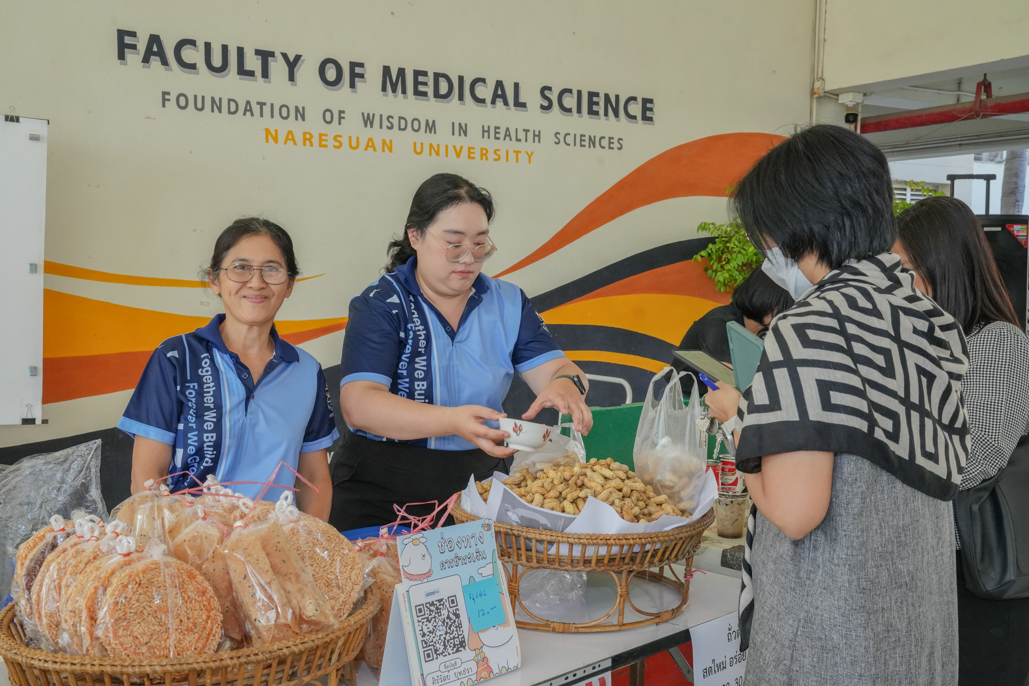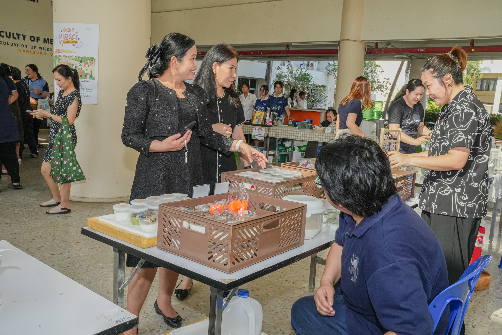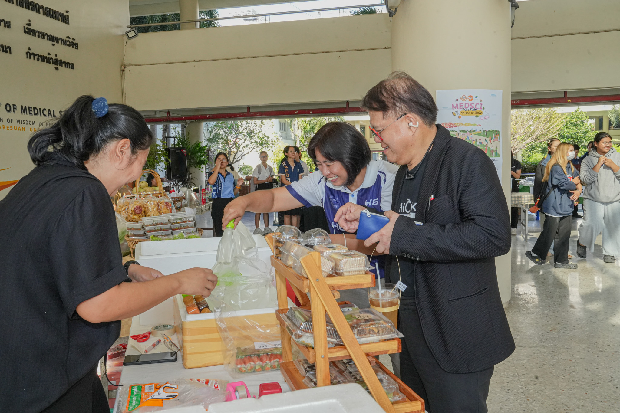 วันพฤหัสบดีที่ 26 กุมภาพันธ์ 2569 รองศาสตราจารย์ ดร.สุขกิจ ยะโสธรศรีกุล คณบดีคณะวิทยาศาสตร์การแพทย์ คณะผู้บริหาร บุคลากร นิสิต และศิษย์เก่าคณะวิทยาศาสตร์การแพทย์ เข้าร่วมกิจกรรม “MedSci Fun Fair 2026” กิจกรรมการพัฒนาแนวคิดเชิงธุรกิจการเป็นผู้ประกอบการ โดยให้การสนับสนุนการจำหน่ายสินค้า ผลิตภัณฑ์ งานอดิเรก จากคณาจารย์ เจ้าหน้าที่ นิสิต และศิษย์เก่าคณะวิทยาศาสตร์การแพทย์ นอกจากนี้ ยังมีร้านค้ากลุ่มผลิตภัณฑ์ส่งเสริมการบริโภคอาหารสุขภาพเพื่อสุขภาพเครือข่ายคณะวิทยาศาสตร์การแพทย์ ณ บริเวณโถงแก้ว (ชั้น1) อาคารเรียนคณะวิทยาศาสตร์การแพทย์ มหาวิทยาลัยนเรศวร