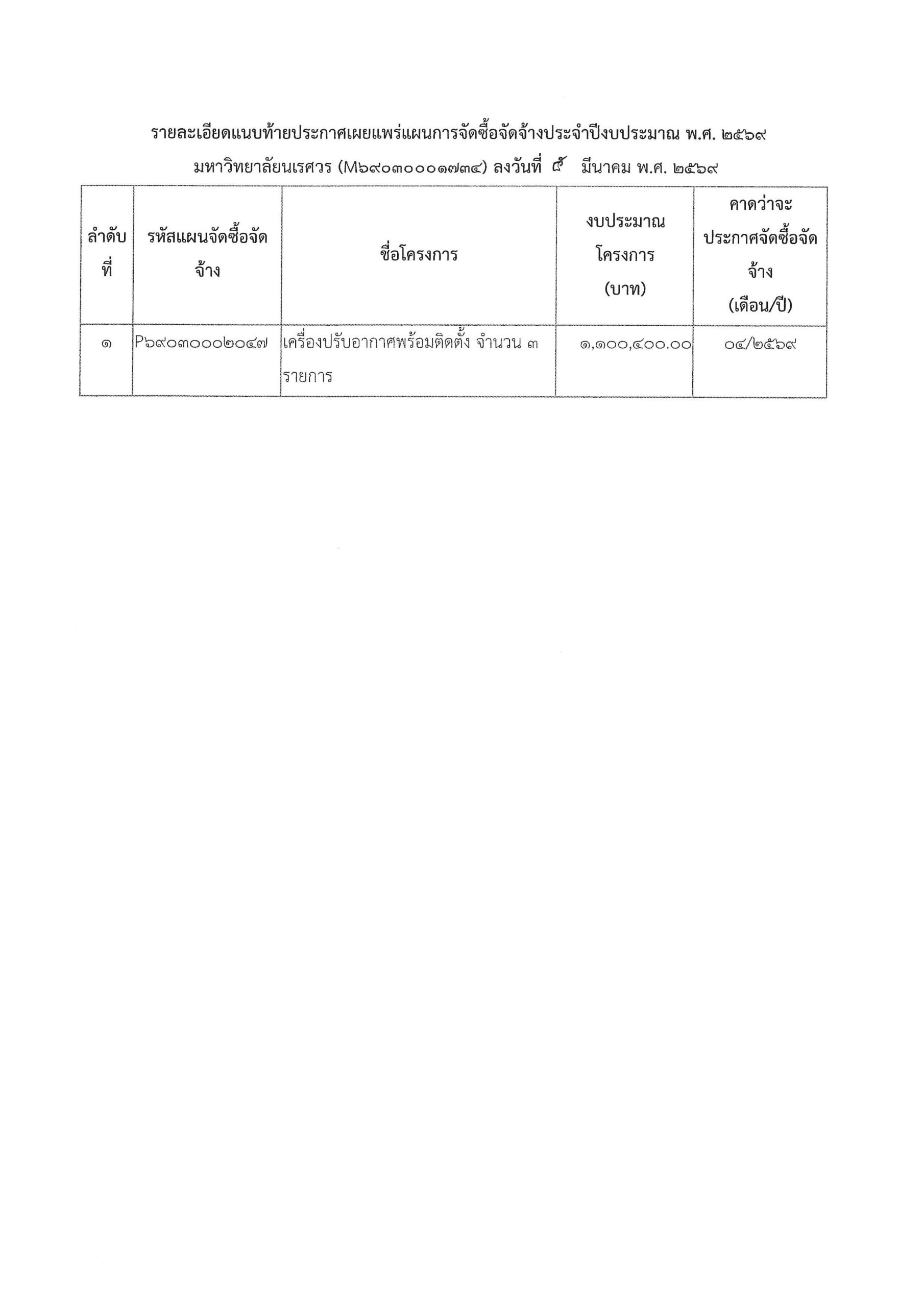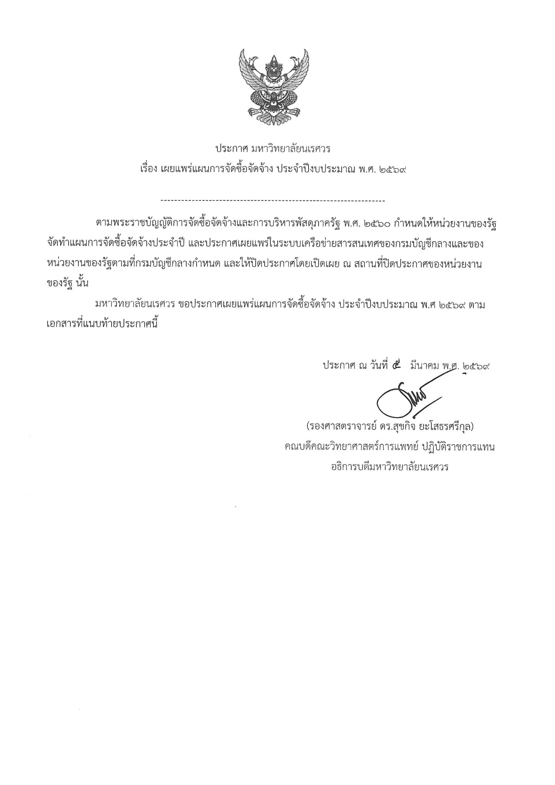 ประกาศ มหาวิทยาลัยนเรศวร เรื่อง เผยแพร่แผนการจัดซื้อจัดจ้าง ประจำปีงบประมาณ 2569
