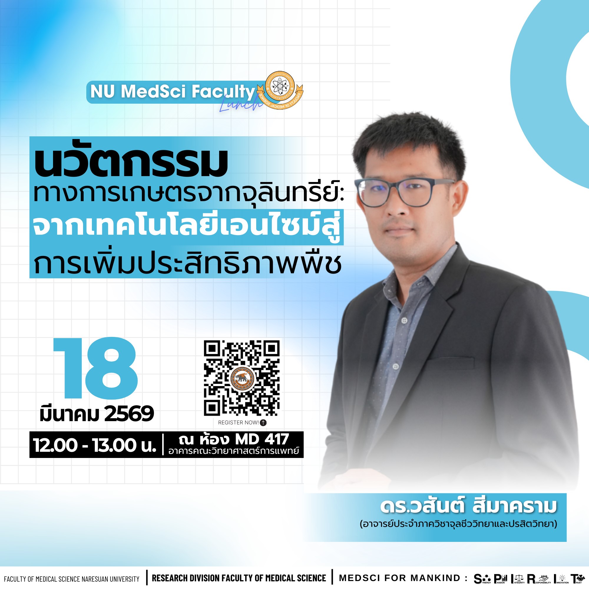 หน่วยวิจัย คณะวิทยาศาสตร์การแพทย์ ขอเชิญผู้สนใจเข้าร่วมการเสวนางานวิจัย