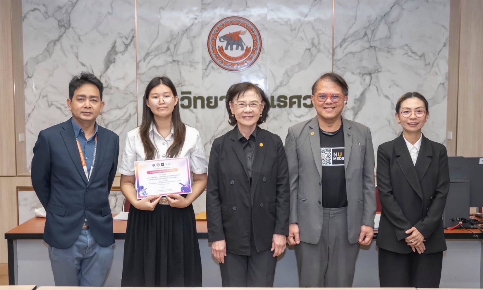 วันที่ 4 มีนาคม 2569 รองศาสตราจารย์ ดร.ศรินทร์ทิพย์ แทนธานี รักษาราชการแทนอธิการบดีมหาวิทยาลัยนเรศวร ให้เกียรติมอบใบประกาศนียบัตรแก่ทีมที่ได้รับรางวัลชนะเลิศ จากการแข่งขัน “UBI-Alpha : Business Contest 2026” ระดับภูมิภาค ภาคเหนือ ณ ห้องประชุมนเรศวร 310 สำนักงานอธิการบดี มหาวิทยาลัยนเรศวร