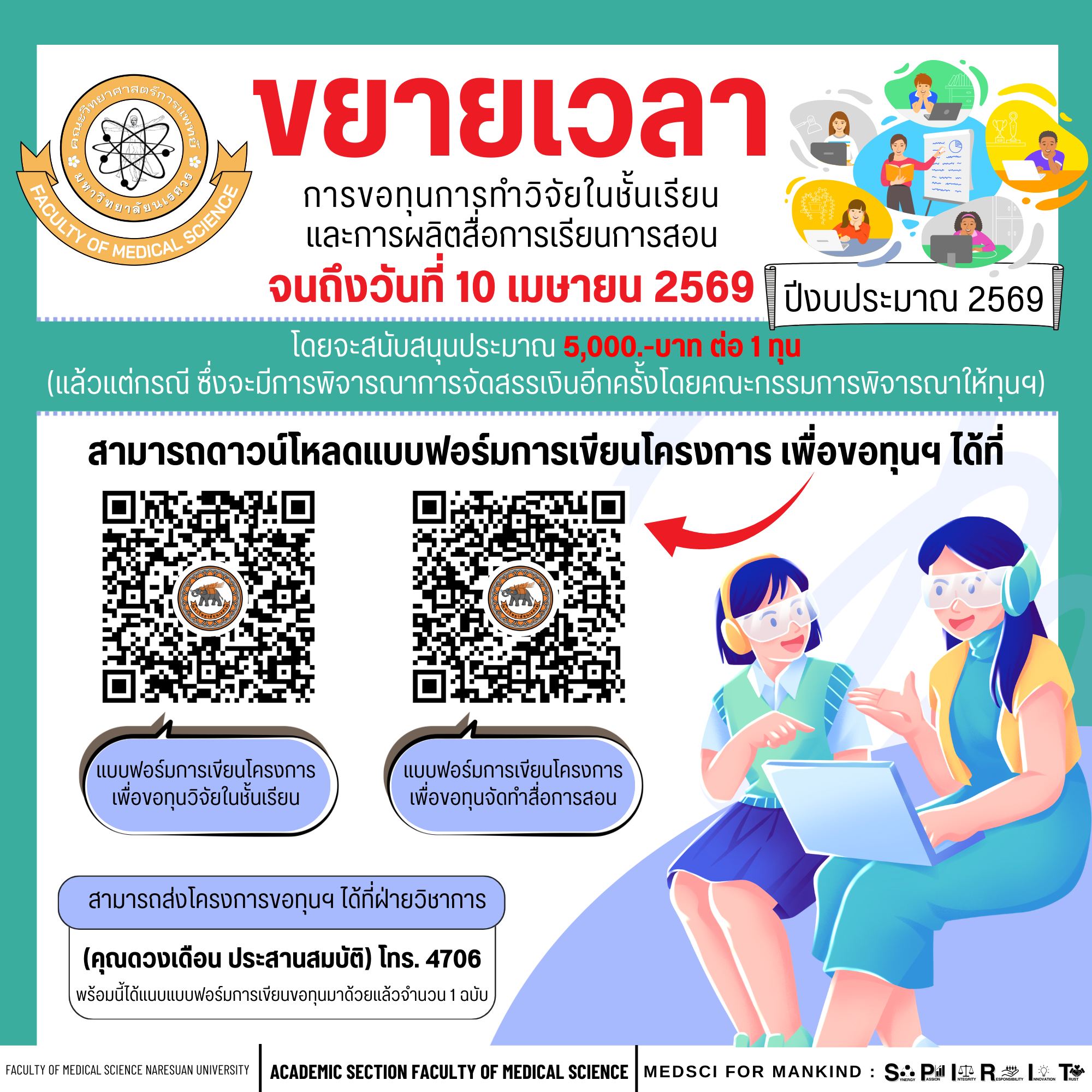 “การขอทุนการทำวิจัยในชั้นเรียน และการผลิตสื่อการเรียนการสอน ปีงบประมาณ 2569”
