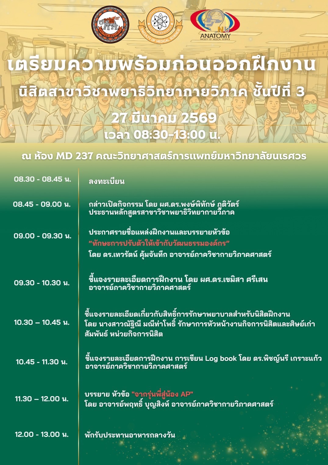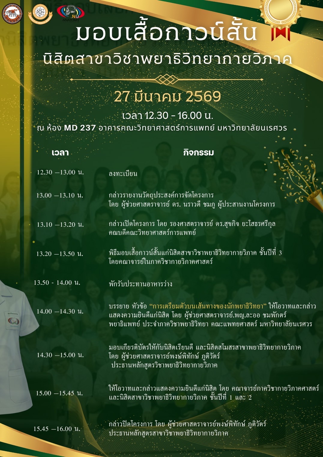 กิจกรรมพิธีมอบเสื้อกราวด์สั้น และ กิจกรรมเตรียมความพร้อมก่อนออกฝึกงาน ของนิสิตสาขาวิชาพยาธิวิทยากายวิภาคศาสตร์