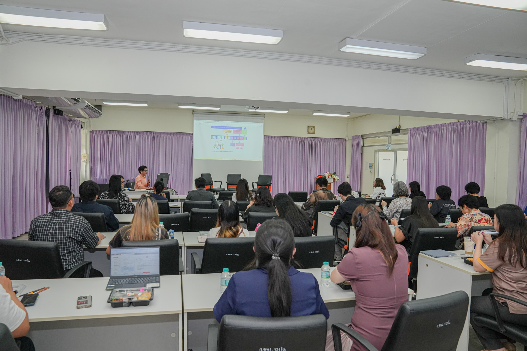 ซึ่งได้รับเกียรติจาก ศาสตราจารย์ ดร.สุทิสา ถาน้อย และ ผู้ช่วยศาสตราจารย์ ดร.เมธวี ศรีคำมูล ซึ่งเป็นผู้ได้รับทุนสนับสนุนจาก สถาบันวิจัยระบบสาธารณสุข (สวรส.) มาร่วมถ่ายทอดประสบการณ์ แนวทางการเขียนข้อเสนอโครงการวิจัย เทคนิคการเตรียมความพร้อม และปัจจัยสำคัญที่ช่วยเพิ่มโอกาสในการได้รับทุน