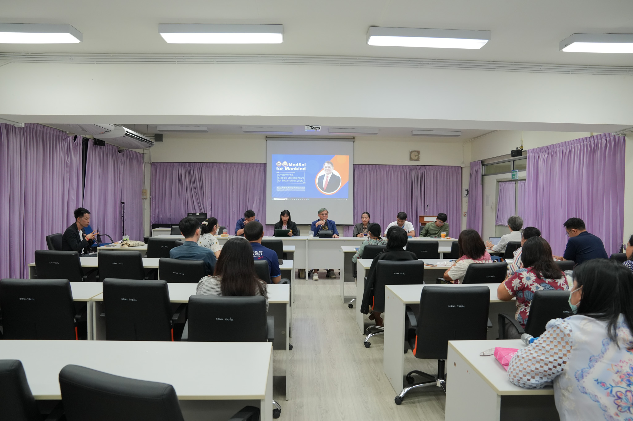 วันพุธที่ 29 พฤษภาคม 2567 ณ ห้อง MD 417 ทีมผู้บริหารคณะวิทยาศาสตร์การแพทย์ นำโดย รองศาสตราจารย์ ดร.สุขกิจ ยะโสธรศรีกุล คณบดีคณะวิทยาศาสตร์การแพทย์ ร่วมด้วยรองคณบดี และผู้ช่วยคณบดี ได้พบปะบุคลากรภาควิชาสรีรวิทยา เพื่อพูดคุย แลกเปลี่ยน และรับฟังความคิดเห็นต่าง ๆ เพื่อนำข้อมูลมาปรับใช้ในการบริหารงานของคณะให้มีประสิทธิภาพและประสิทธิผลให้มากยิ่งขึ้นต่อไป