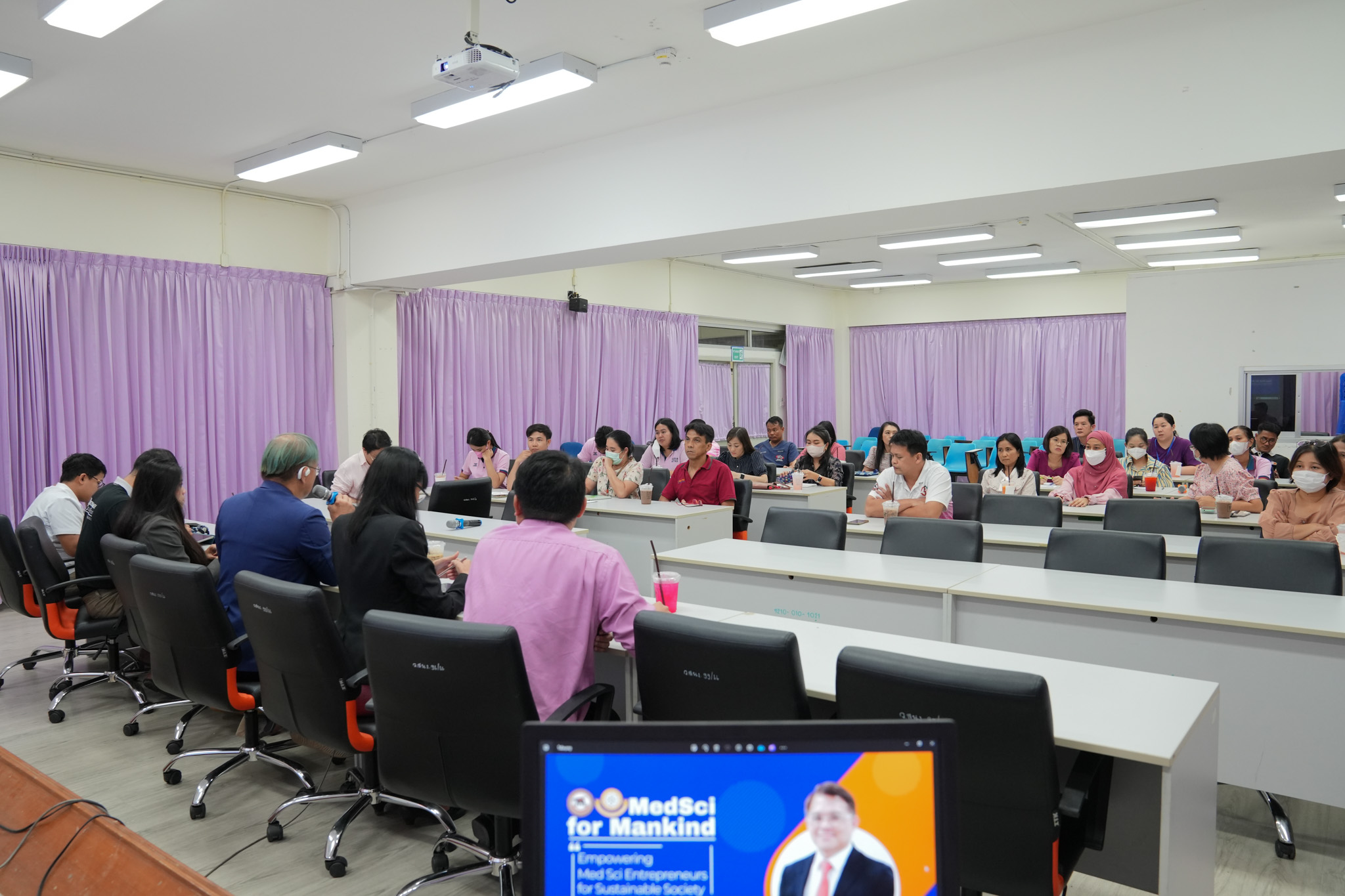 วันอังคารที่ 28 พฤษภาคม 2567 ณ ห้อง MD 417 ทีมผู้บริหารคณะวิทยาศาสตร์การแพทย์ นำโดย รองศาสตราจารย์ ดร.สุขกิจ ยะโสธรศรีกุล คณบดีคณะวิทยาศาสตร์การแพทย์ ร่วมด้วยรองคณบดี และผู้ช่วยคณบดี ได้พบปะบุคลากรสายสนับสนุน เพื่อพูดคุย แลกเปลี่ยน และรับฟังความคิดเห็นต่าง ๆ เพื่อนำข้อมูลมาปรับใช้ในการบริหารงานของคณะให้มีประสิทธิภาพและประสิทธิผลให้มากยิ่งขึ้นต่อไป