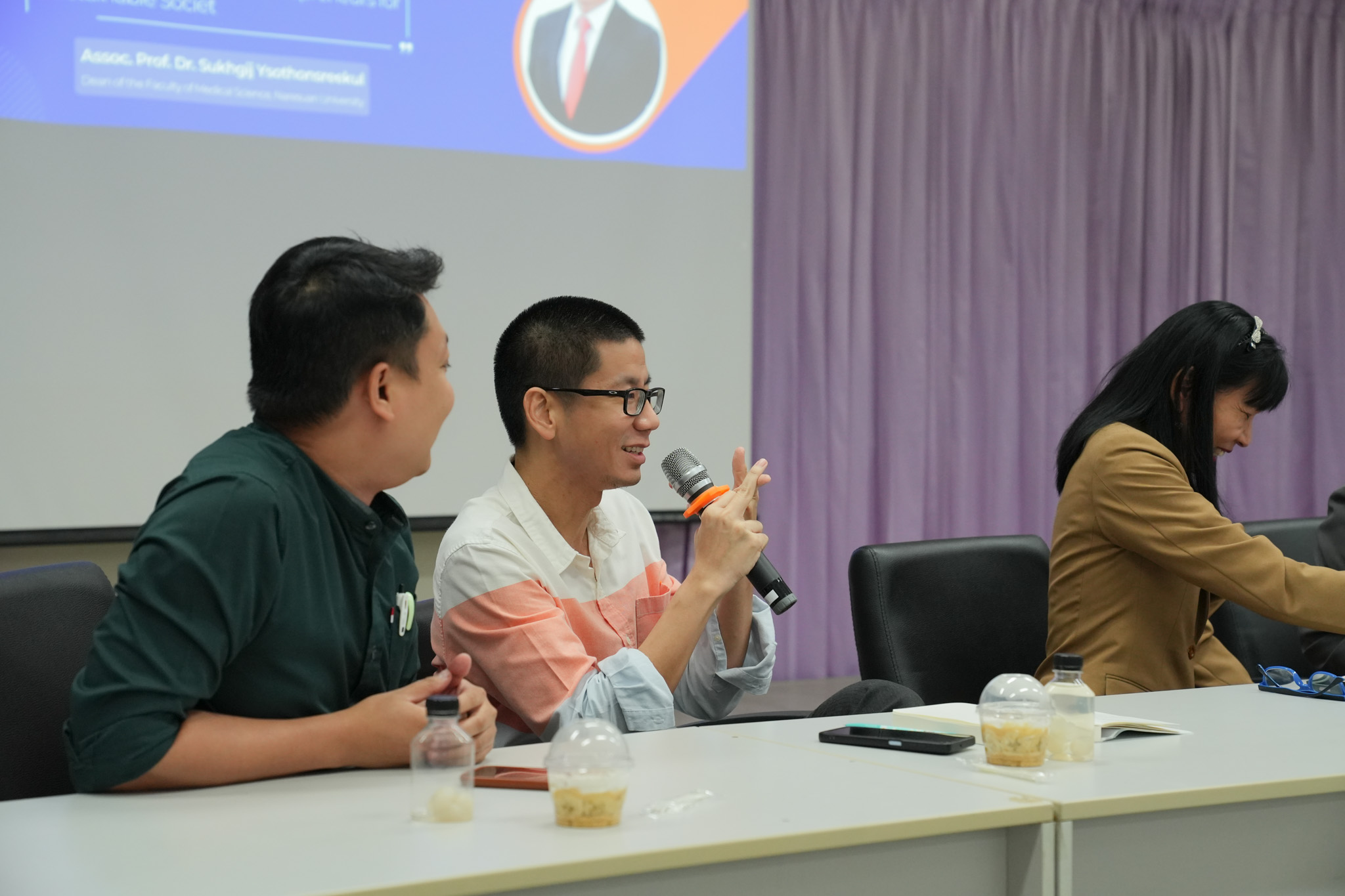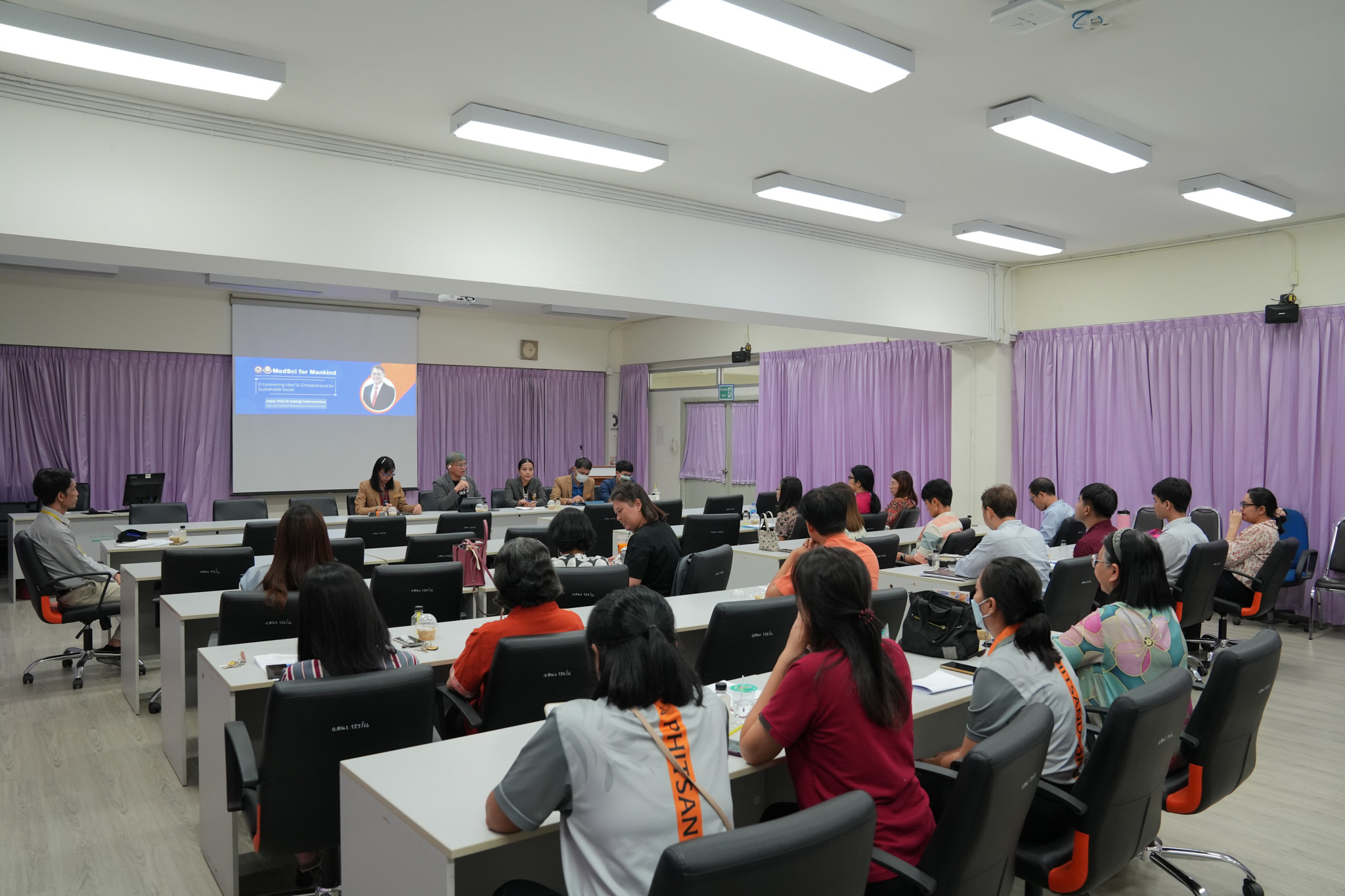 วันพฤหัสบดีที่ 23 พฤษภาคม 2567 ณ ห้อง MD417 ทีมผู้บริหารคณะวิทยาศาสตร์การแพทย์ นำโดย รองศาสตราจารย์ ดร.สุขกิจ ยะโสธรศรีกุล คณบดีคณะวิทยาศาสตร์การแพทย์ ร่วมด้วยรองคณบดี และผู้ช่วยคณบดี ได้พบปะบุคลากรภาควิชาชีวเคมี เพื่อพูดคุย แลกเปลี่ยน และรับฟังความคิดเห็นต่าง ๆ เพื่อนำข้อมูลมาปรับใช้ในการบริหารงานของคณะให้มีประสิทธิภาพและประสิทธิผลให้มากยิ่งขึ้นต่อไป