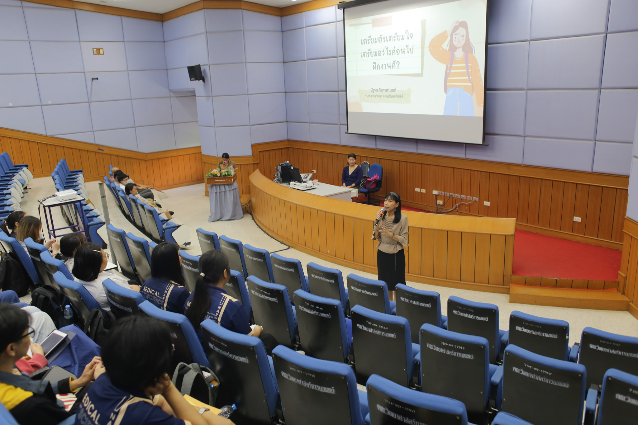 วันพฤหัสบดีที่ 30 พฤษภาคม 2567 ณ ห้อง MD 232 อาคารคณะวิทยาศาสตร์การแพทย์หลักสูตรวิทยาศาสตรบัณฑิต สาขาวิชาวิทยาศาสตร์การแพทย์ ได้จัดกิจกรรมเตรียมความพร้อมก่อนออกปฏิบัติงานสหกิจศึกษา ภาคเรียนต้น ปีการศึกษา 2567 สำหรับนิสิตหลักสูตรวิทยาศาสตรบัณฑิต สาขาวิชาวิทยาศาสตร์การแพทย์ และสาขาวิชาวิทยาศาสตร์การแพทย์ (ตรีต่อเนื่องโท) โดยมี รองศาสตราจารย์ ดร.รักษิณา พลสีลา รองคณบดีฝ่ายการจัดการหลักสูตร กล่าวเปิดกิจกรรม ร่วมกับอาจารย์ผู้รับผิดชอบหลักสูตร